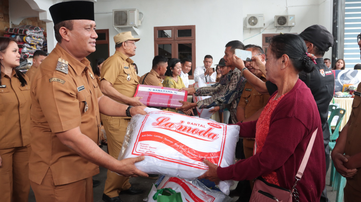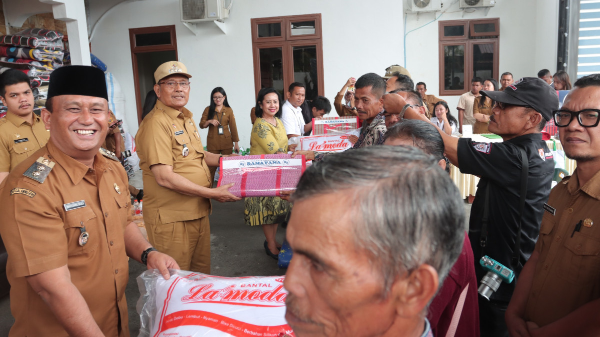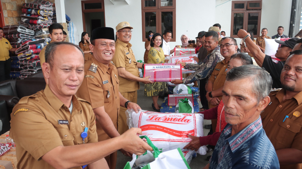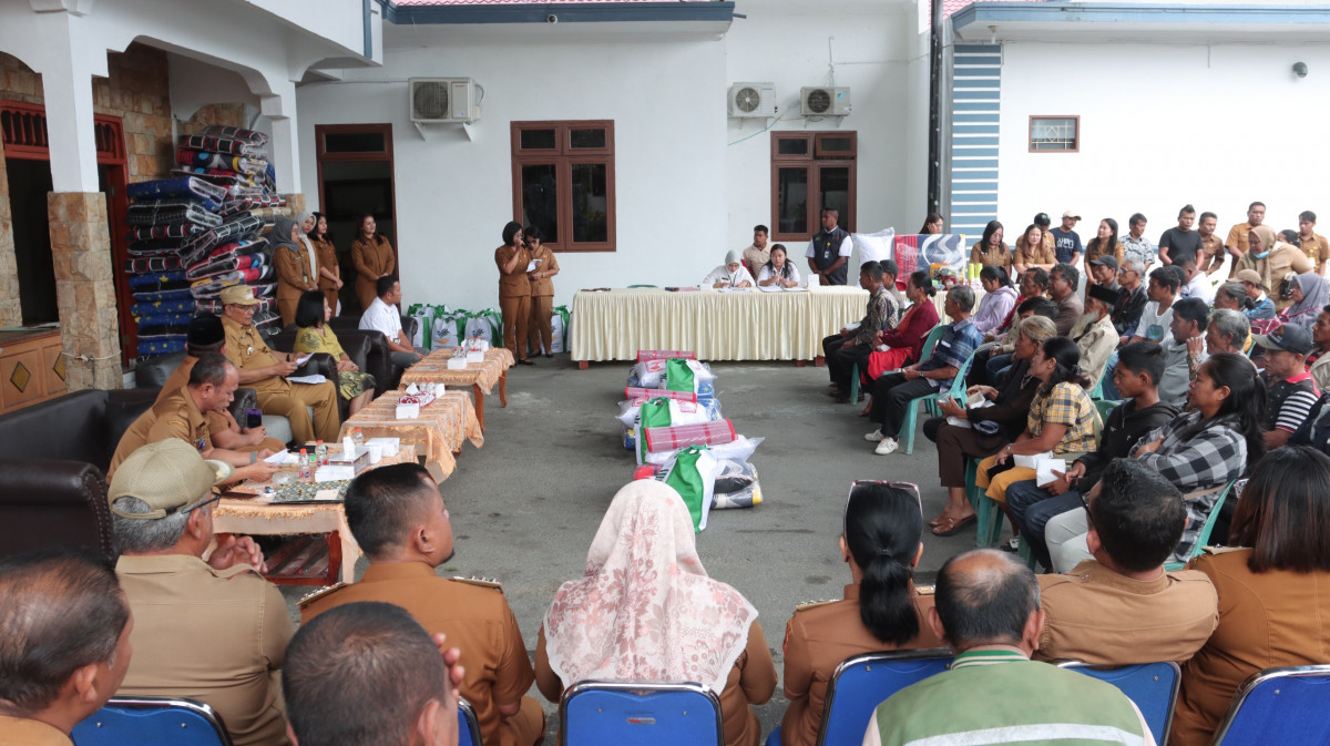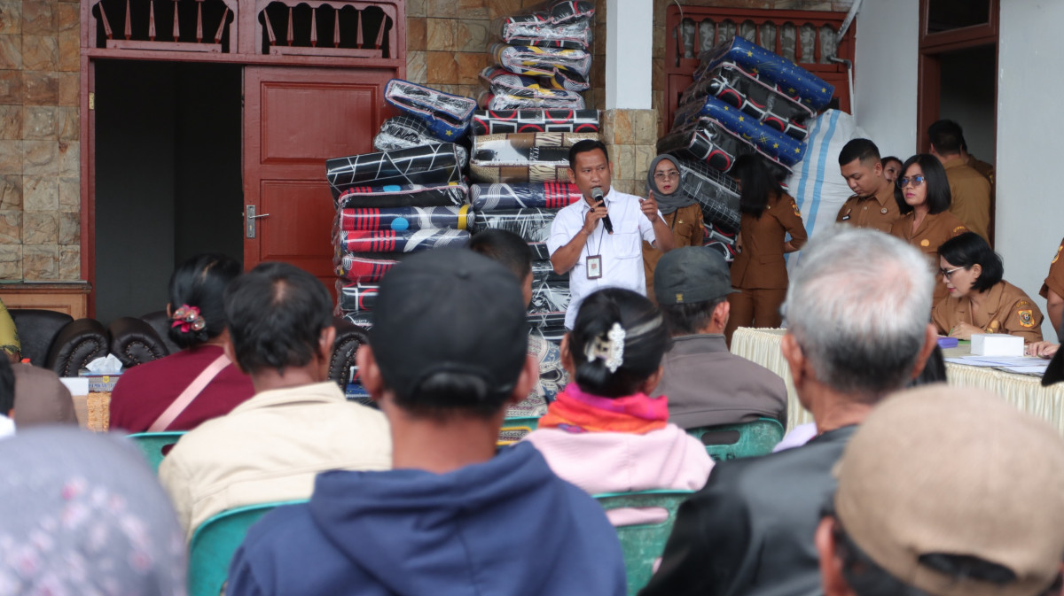 Dairi - Pemerintah Kabupaten Dairi melalui Dinas Sosial bagikan bantuan atensi bencana dari Kementerian Sosial kepada masyarakat, Selasa (4/11/2025) di Pendopo Bupati.