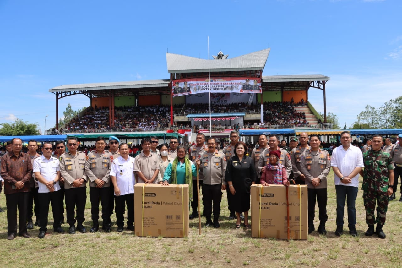 Dalam kegiatan bakti sosial, Wakapolri menyerahkan ribuan paket sembako kepada warga. Sementara, bakti kesehatan yang dilaksanakan mencakup sunatan massal, pengobatan gratis, serta pemberian alat bantu seperti kursi roda dan tongkat berjalan bagi mereka yang membutuhkan.
