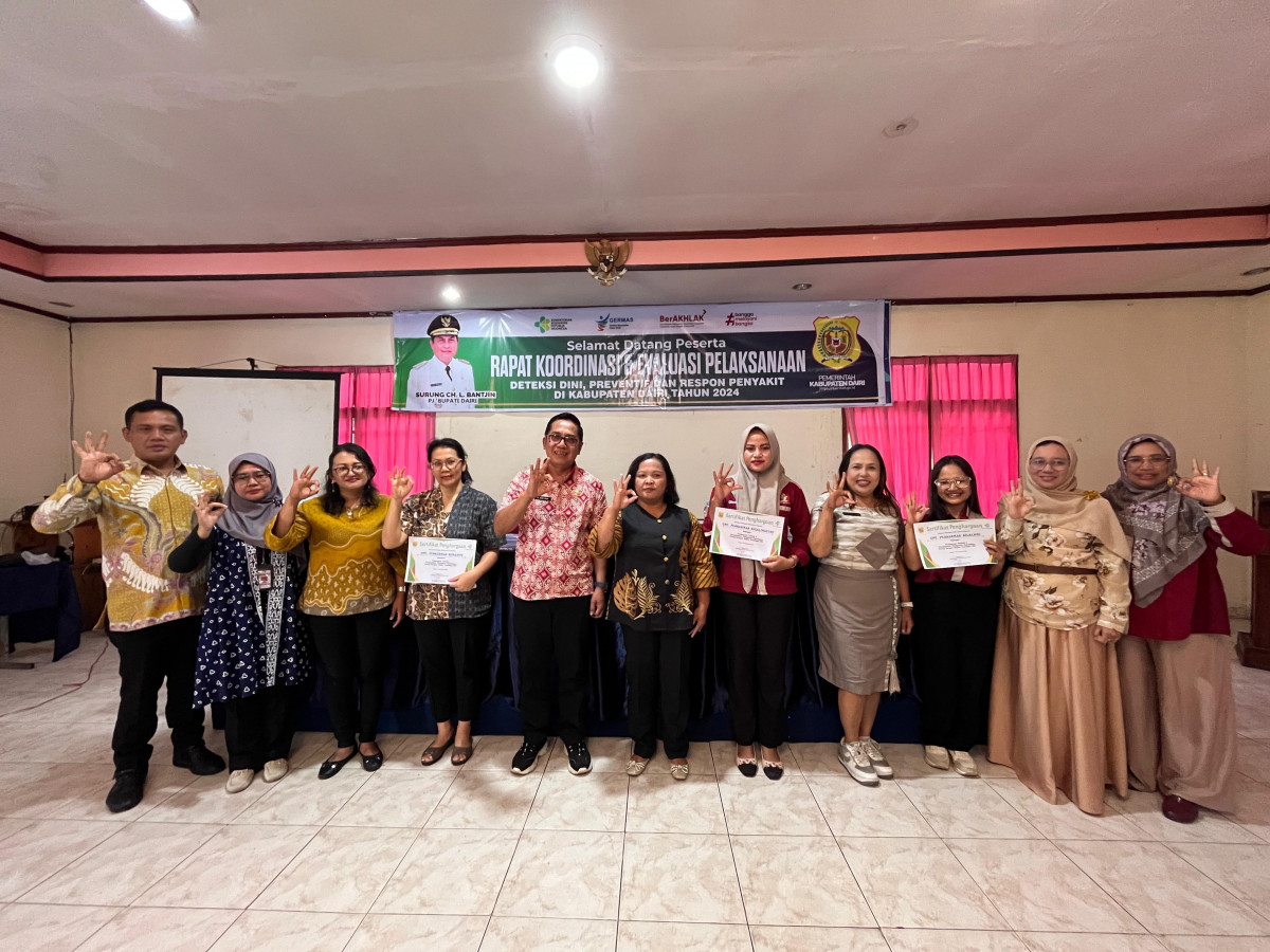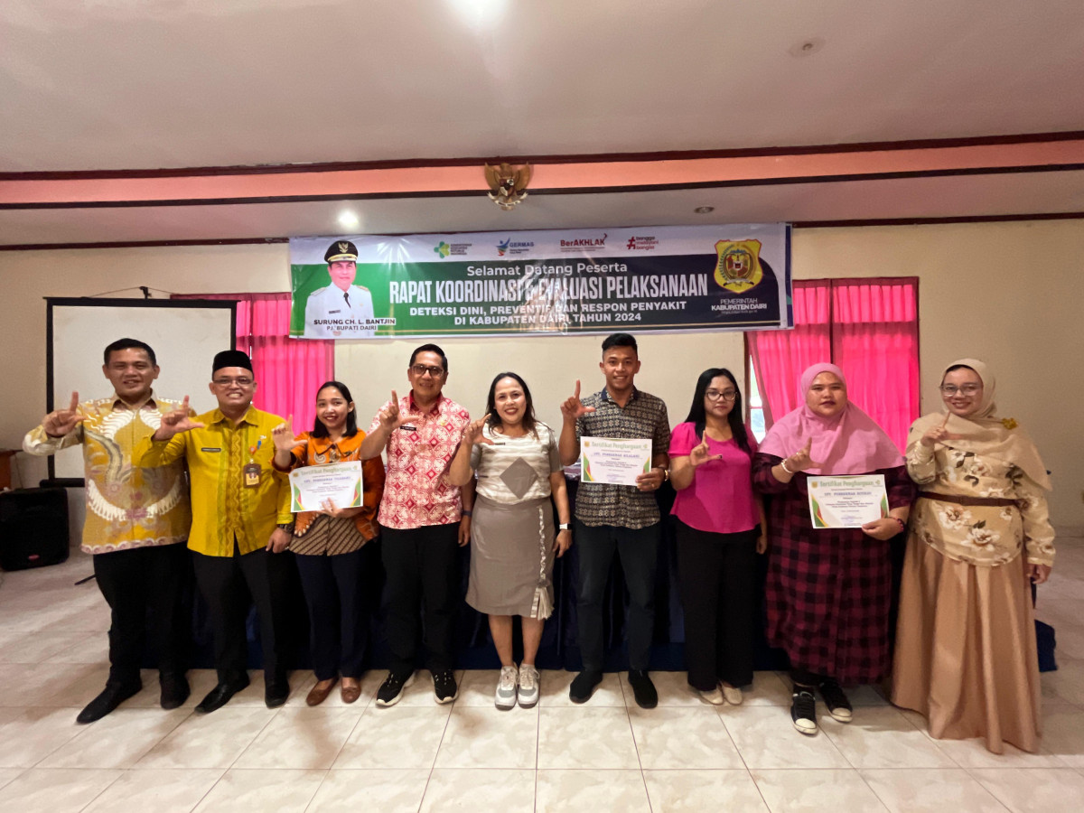 DAIRIKAB.go.id - Dinas Kesehatan Kabupaten Dairi menyelenggarakan Rapat Koordinasi dan Evaluasi Pelaksanaan Deteksi Dini, Preventif, dan Respon Penyakit di Kabupaten Dairi pada 11-12 Desember 2024, bertempat di Aula Hotel Beristra Sidikalang, Kamis, (12/12/2024).