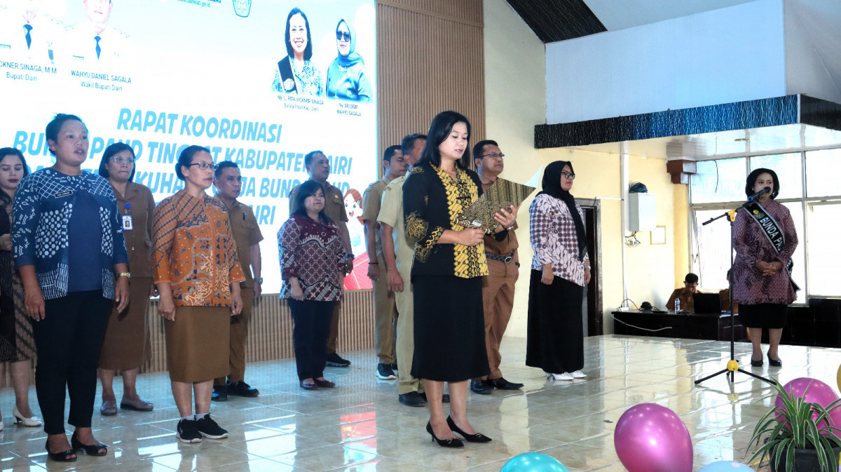 Sidikalang - Bunda Paud Dairi Rita Puspita Vickner Sinaga mengukuhkan Pokja Bunda Paud periode 2025-2030 pada Senin (27/10/2025) di Balai Budaya Sidikalang. Pengukuhan Pokja Bunda Paud turut disaksikan oleh Bupati Dairi Vickner Sinaga yang diwakili oleh Wakil Bupati Dairi Wahyu Daniel Sagala serta Staf Ahli Tim Penggerak PKK Dairi Sri Dewi Wahyu Sagala.