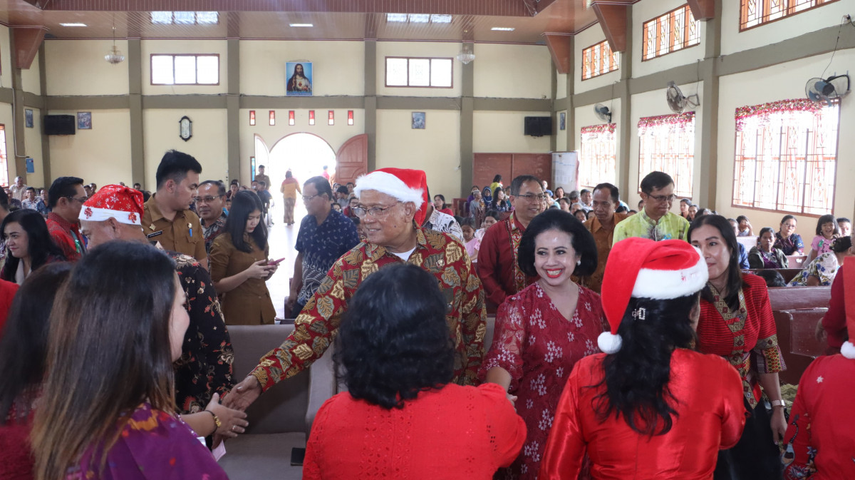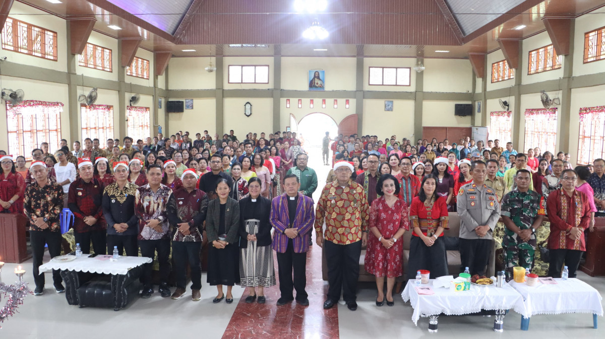 Tigalingga - Pemkab Dairi mengadakan ibadah Natal dan pemberian tali asih kepada masyarakat kecamatan Tigalingga, Tanah Pinem, Gunung Sitember, Siempat Nempu Hulu yang dilaksanakan di gereja HKBP Tigalingga pada Selasa (16/12/2025). Ibadah Natal bersama tersebut dihadiri oleh Bupati Dairi Vickner Sinaga, Ketua TP PKK Dairi Rita Puspita Vickner Sinaga, Asisten Pemerintahan dan Kesejahteraan Rakyat Agel Siregar serta Pimpinan OPD.