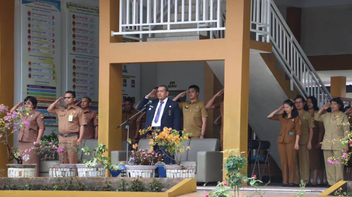 Sidikalang - Bupati Dairi Vickner Sinaga menjadi Pembina Upacara di SMP Negeri 1 Sidikalang pada Senin (15/9/2025). Sebagai Pembina Upacara, Bupati Dairi memberikan wejangan kepada pelajar SMP Negeri 1 Sidikalang.