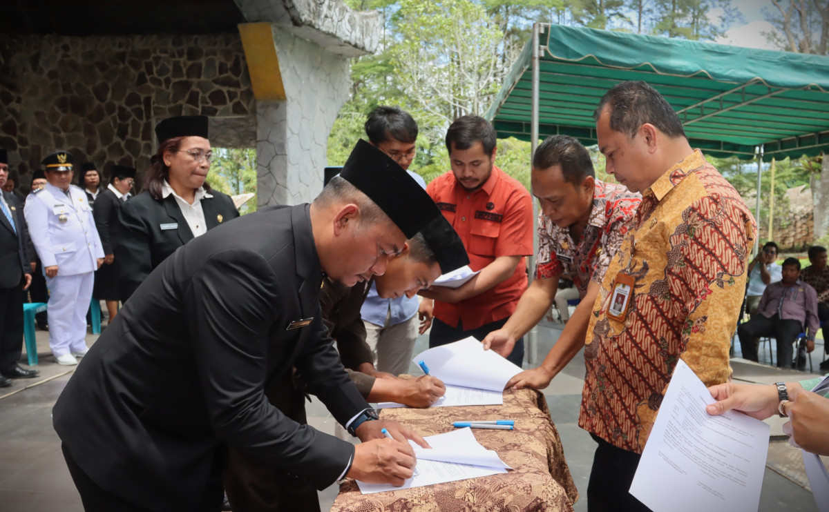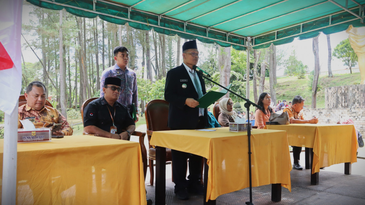 Sitinjo - Bupati Dairi Vickner Sinaga melantik dan mengambil sumpah janji jabatan pejabat struktural dan pejabat fungsional di lingkungan Pemkab Dairi pada Jumat (27/2/2026) di Taman Wisata Iman Sitinjo. Pelantikan dan pengambilan sumpah janji jabatan turut di hadiri oleh Wakil Bupati Dairi Wahyu Daniel Sagala, Sekretaris Daerah Surung Charles Bantjin, Staf Ahli Bupati dan Asisten, Ketua TP PKK Dairi Rita Puspita Vickner Sinaga serta Pimpinan OPD.