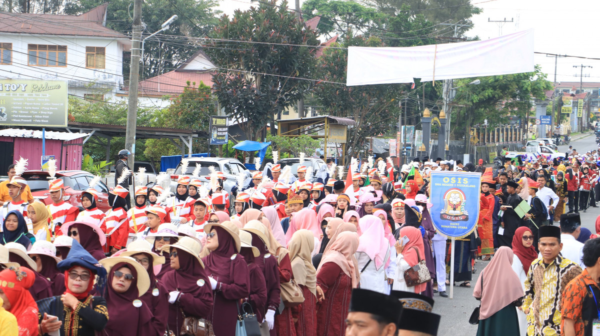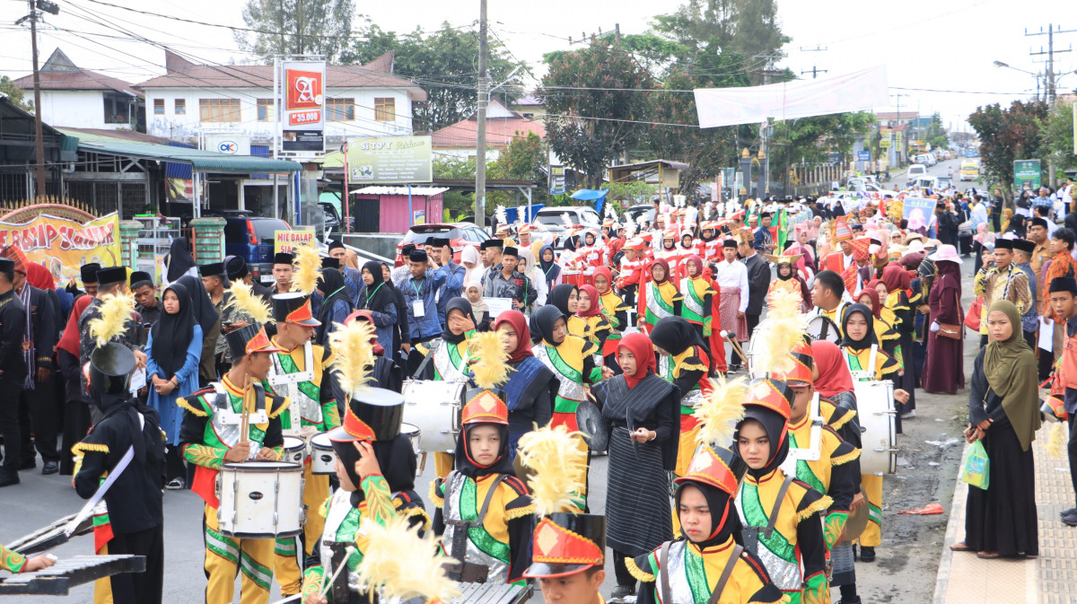 Pelepasan pawai dimeriahkan dengan iringan drumband dari beberapa perwakilan sekolah dan diikuti oleh para peserta MTQ dilakukan dari depan Kantor Bupati Dairi menuju lokasi MTQ di Desa Bintang, Senin 5 Mei 2025.