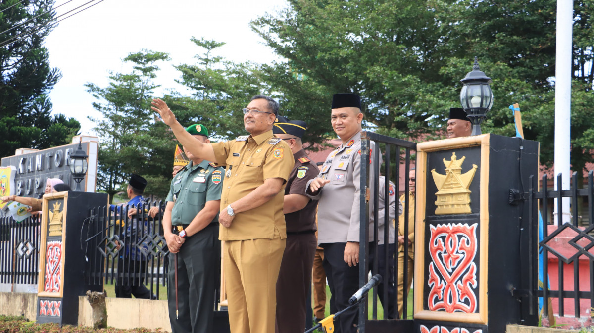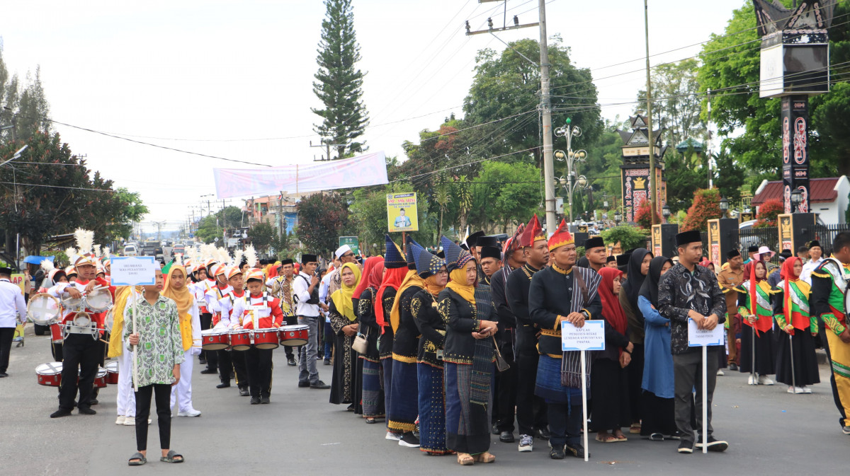 Dairi – Bupati Dairi, Vickner Sinaga, bersama Unsur Forum Komunikasi Pimpinan Daerah, (Forkopimda), Kapolres Dairi, AKBP Faisal Andri Pratomo, Dandim 0206 Dairi, Letkol Inf. Goklas P. Silaban, Sekda Charles Bantjin dan jajaran Pemkab Dairi melepas pawai Ta'aruf tanda Musabaqah Tilawatil Qur'an (MTQ) Ke- 50 tingkat Kabupaten Dairi, resmi dimulai.