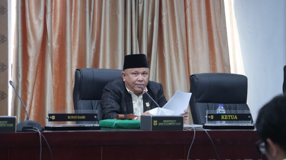 Dairi - Bupati Dairi Vickner Sinaga yang diwakili oleh Wakil Bupati Dairi Wahyu Daniel Sagala menyampaikan Laporan Keterangan Pertanggungjawaban (LKPJ) Tahun Anggaran 2025 dalam rapat paripurna DPRD Dairi, Rabu (22/4/2026). Rapat paripurna di pimpin oleh Ketua DPRD Dairi Sabam Sibarani yang di dampingi oleh Wakil Ketua DPRD Dairi Wanseptember Situmorang.