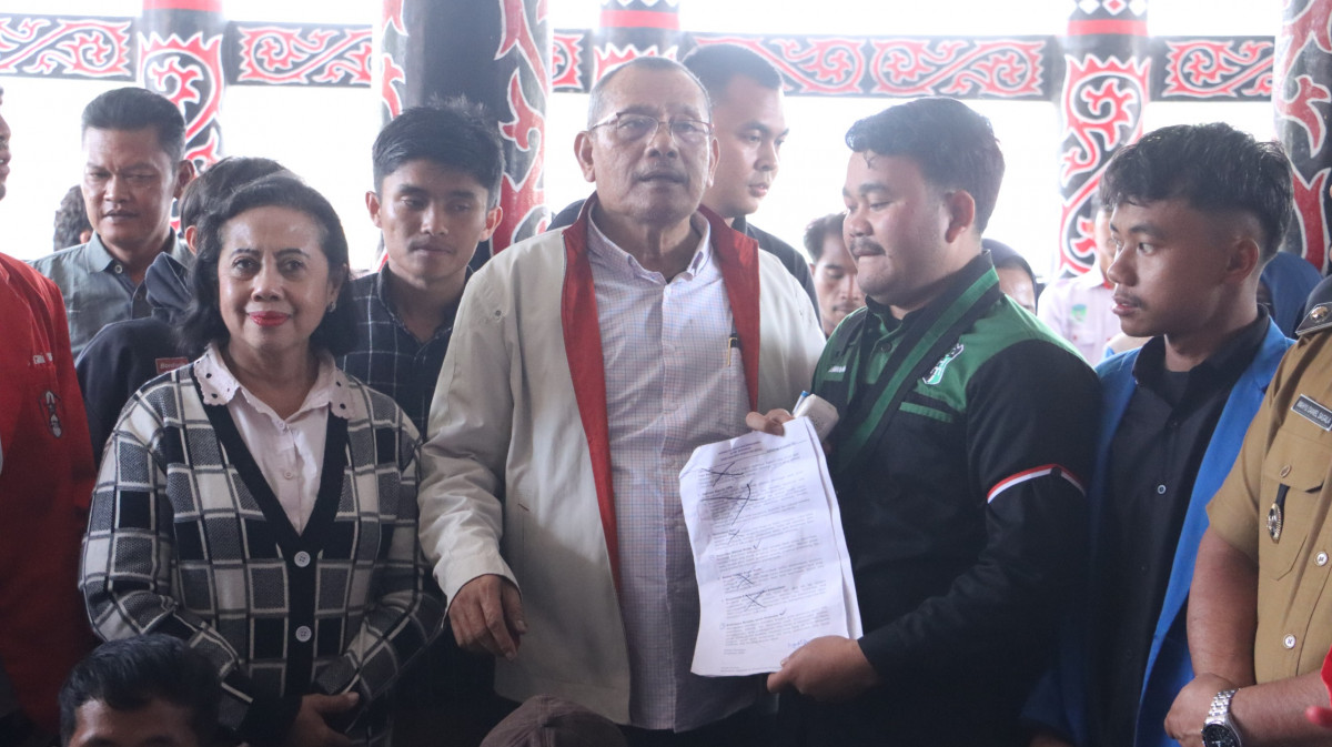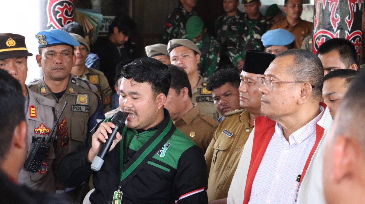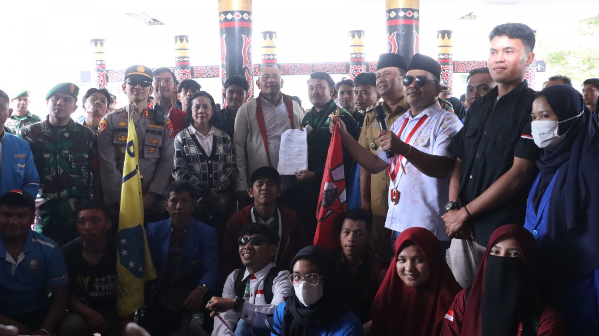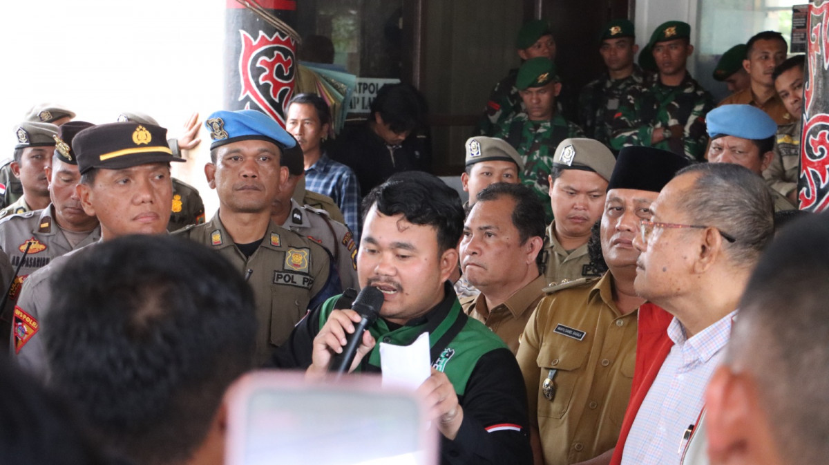 Dairi - Bupati Dairi, Vickner Sinaga, besama Wakil Bupati Dairi, Wahyu Daniel Sagala, dan Sekda, Charles Bantjin menemui Aliansi Pemuda dan Mahasiswa Dairi yang menamakan diri 'Dairi Darurat Kesehatan Sosial' yang menggelar aksi unjuk rasa, Selasa (2/9/2025) di depan Kantor Bupati Dairi. Gerakan ini merupakan gabungan dari sejumlah organisasi kepemudaan dan kemahasiswaan, seperti HMI, PMII, GMNI, IPNU, dan BKPRMI.
