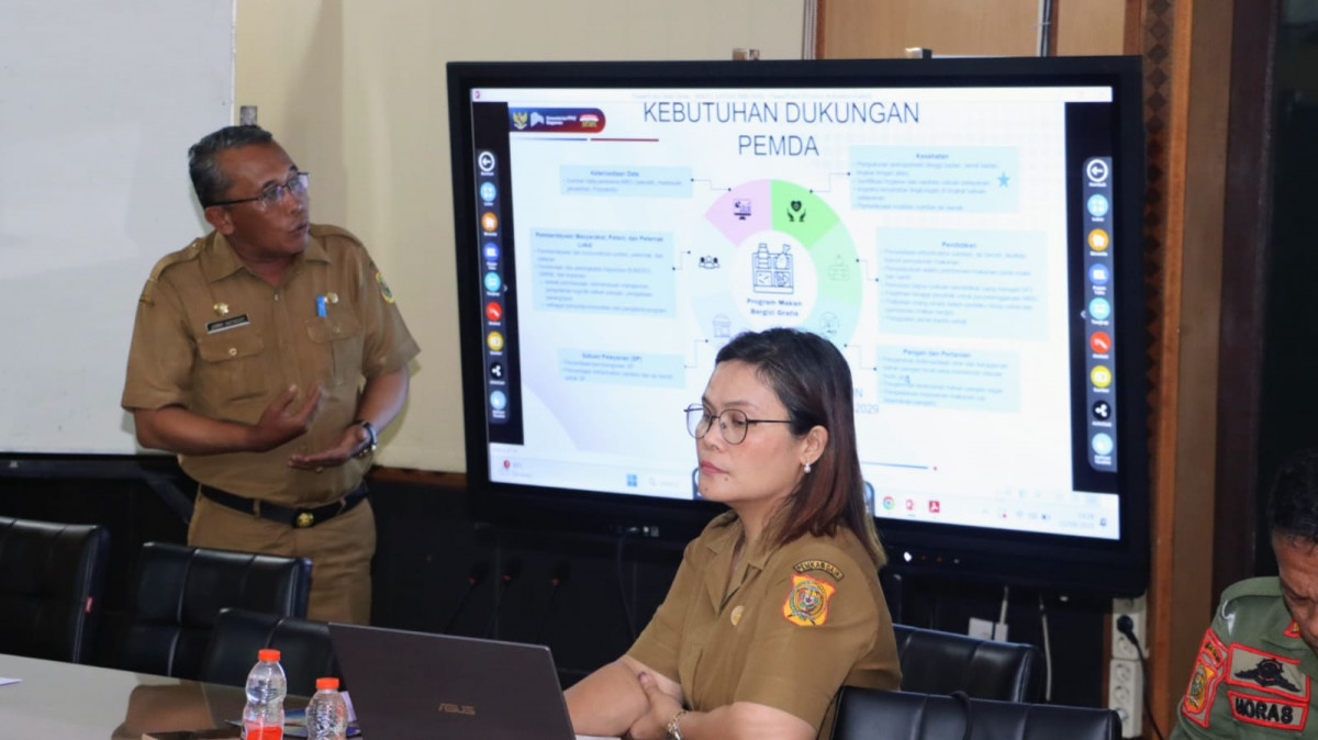 Turut hadir dalam rapat, Sekretaris Daerah Surung Charles Bantjin serta Pimpinan OPD yang tergabung dalam Satgas MBG.(rjt/17)