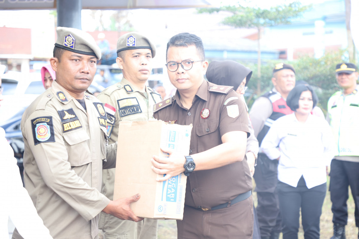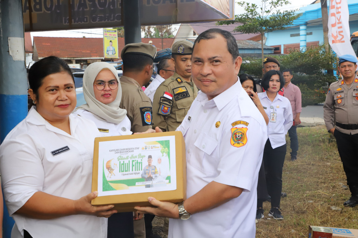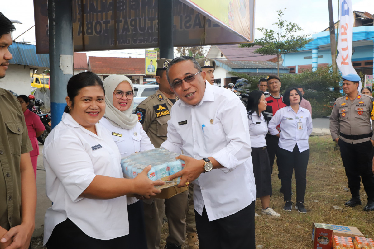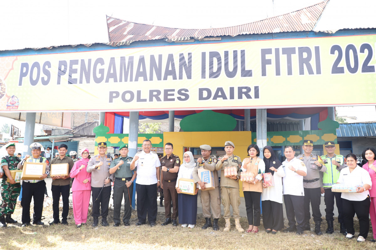 Untuk menyemangati, Bupati Dairi juga menyerahkan bingkisan Idul Fitri kepada petugas pengamanan.
