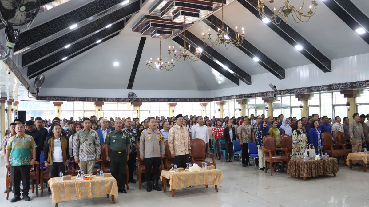 Hadir unsur Forkopimda, mewakili Kapolres Dairi, hadir Wakapolres Kompol D. Munthe mewakili Dandim,Sekda Charles Bantjin, para Kepala OPD, Camat, Ketua TP PKK Kabupaten, Ny Rita Puspita Vickner Sinaga, perwakilan organisasi kepemudaan, mahasiswa, pelajar serta undangan lainnya.(sPr)