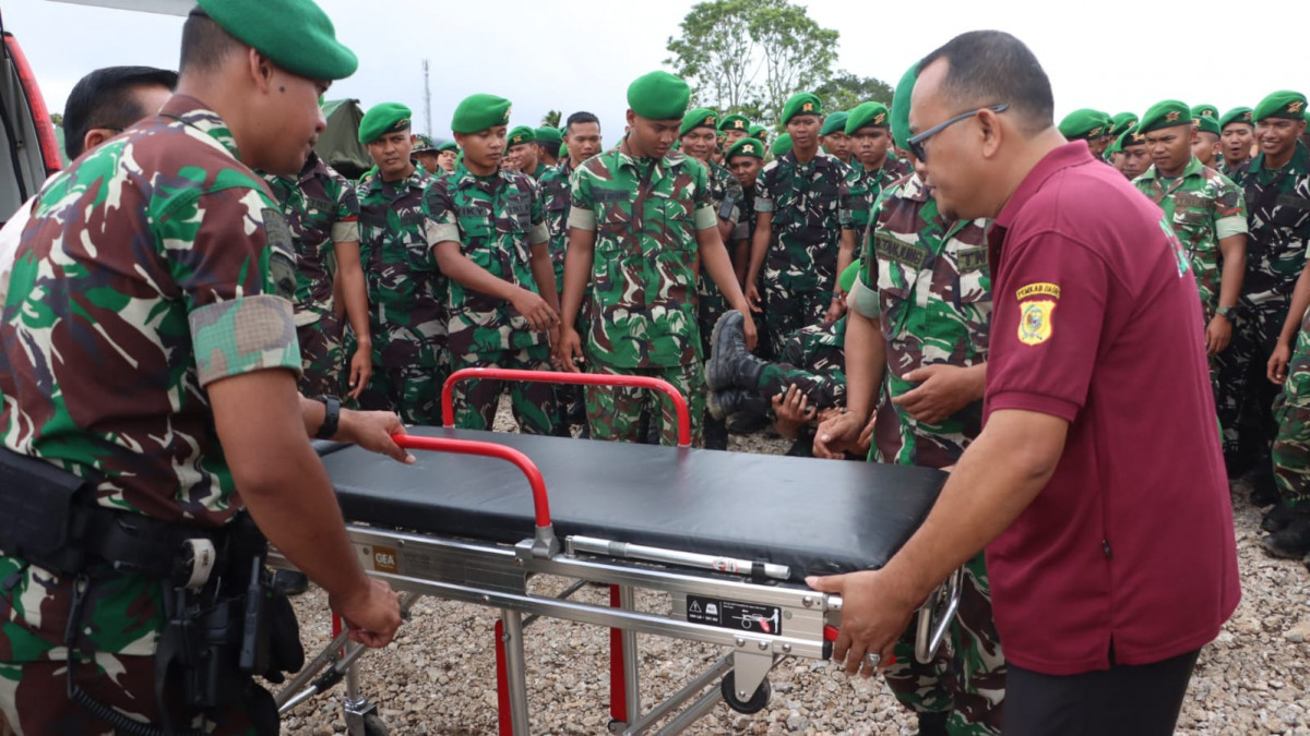 Sidiangkat - Bupati Dairi Vickner Sinaga menyerahkan bantuan fasilitas Kesehatan yakni satu unit ambulans serta obat obatan untuk Batalyon Teritorial Pembangunan (YTP) 908/Gajah Dompak, pada Jumat (12/12/2025) di Sidiangkat. Bantuan fasilitas kesehatan diserahkan sebagai bentuk dukungan Pemkab Dairi untuk Batalyon Dompak Gajah dalam menjalankan berbagai kegiatan.