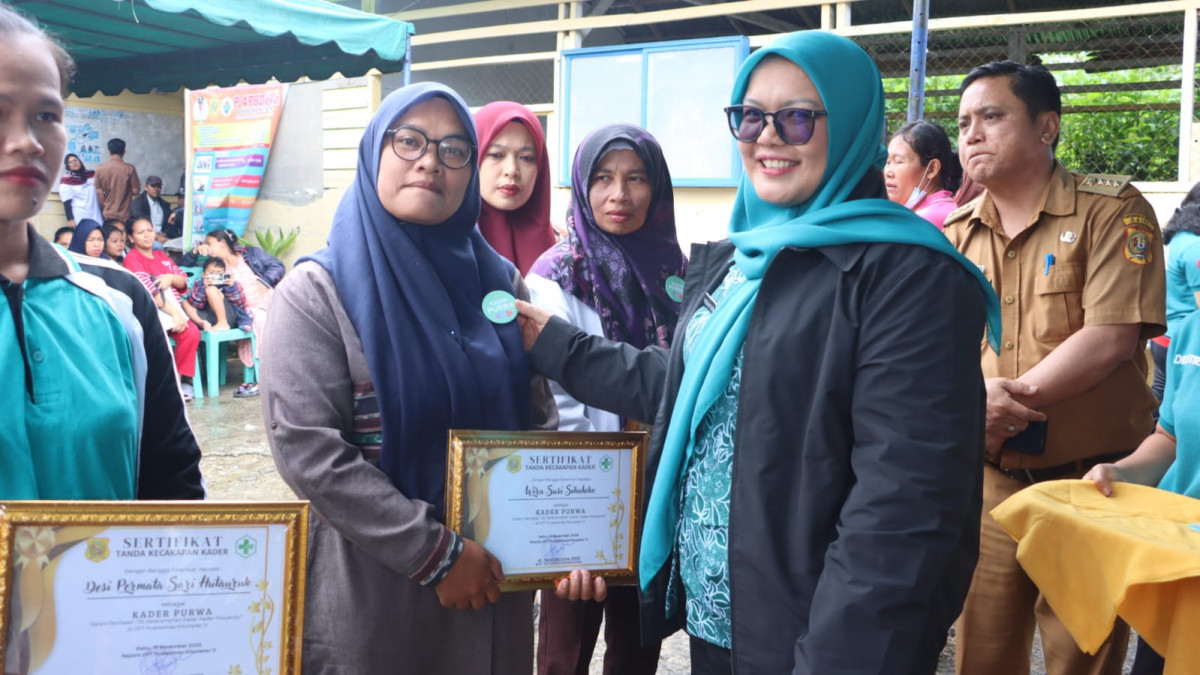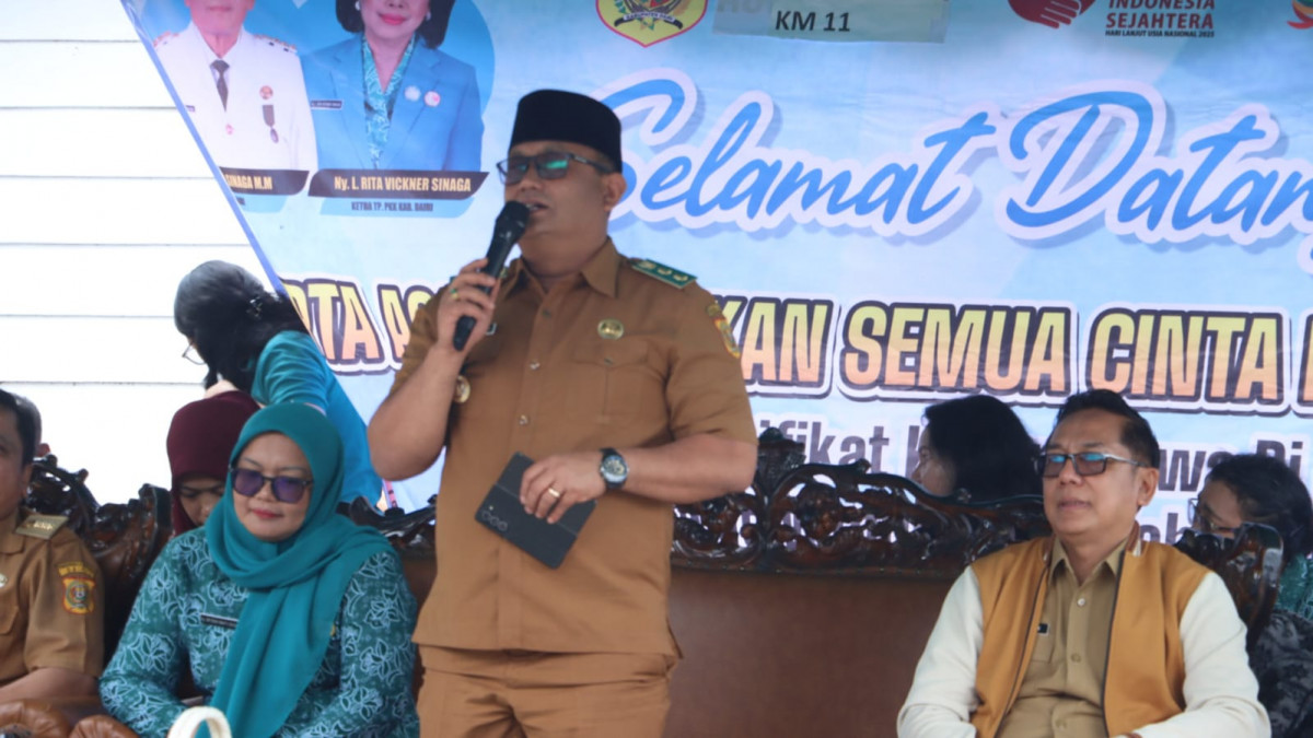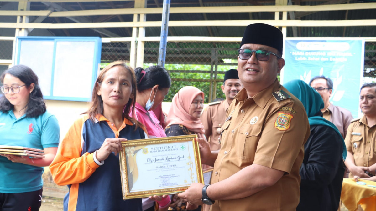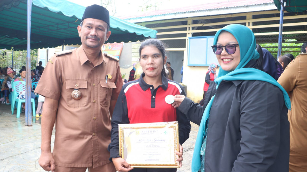 DAIRI - Wakil Bupati Dairi, Wahyu Daniel Sagala menghadiri kegiatan gerakan ibu hamil (bumil) sehat dan semua cinta lansia yang dirangkai dengan penyerahan sertifikat kader purwa juga pemberian bantuan sosial untuk warga disabilitas Desa Lae Nuaha, Selasa (26/11/2025), di Balai Desa Lae Nuaha yang turut dihadiri oleh Asisten Pemerintahan dan Kesejahteraan Rakyat, Agel Siregar serta Staf Ahli TP PKK Dairi Sri Dewi Wahyu Daniel Sagala.