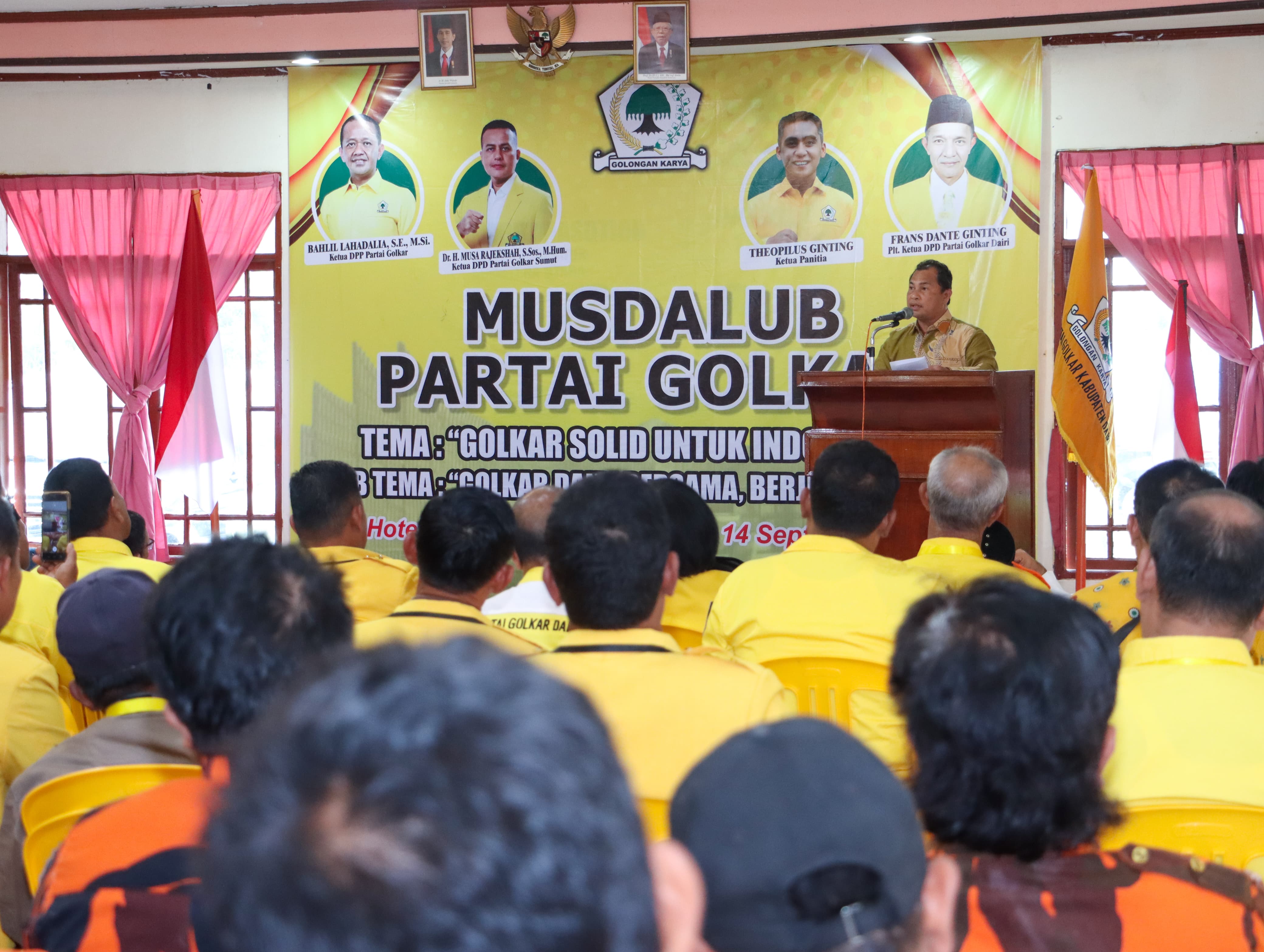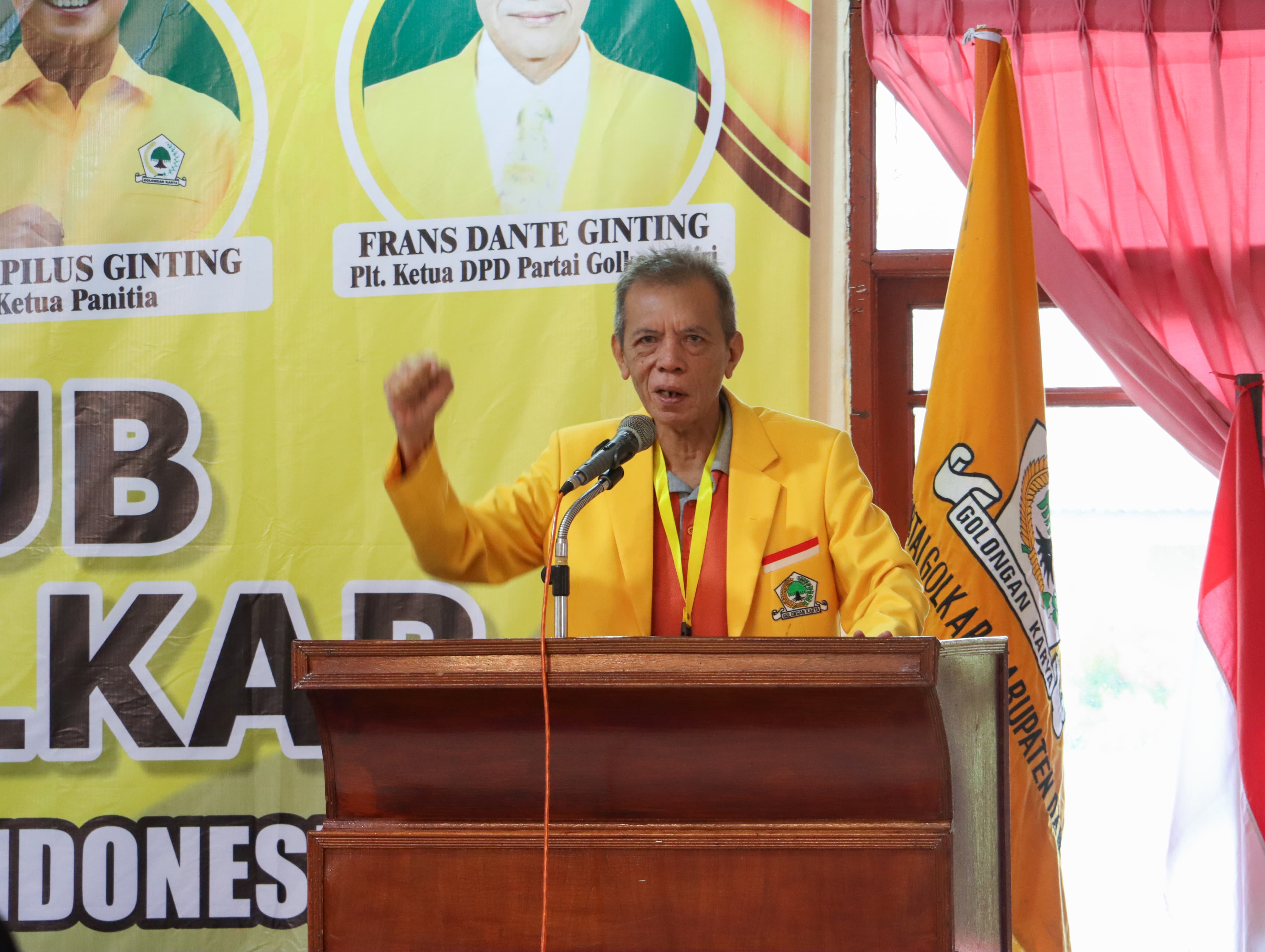 Dalam sambutannya, Surung Charles menyampaikan dukungan dan sambutan baik atas terselenggaranya musdalub Partai Golkar Kabupaten Dairi.