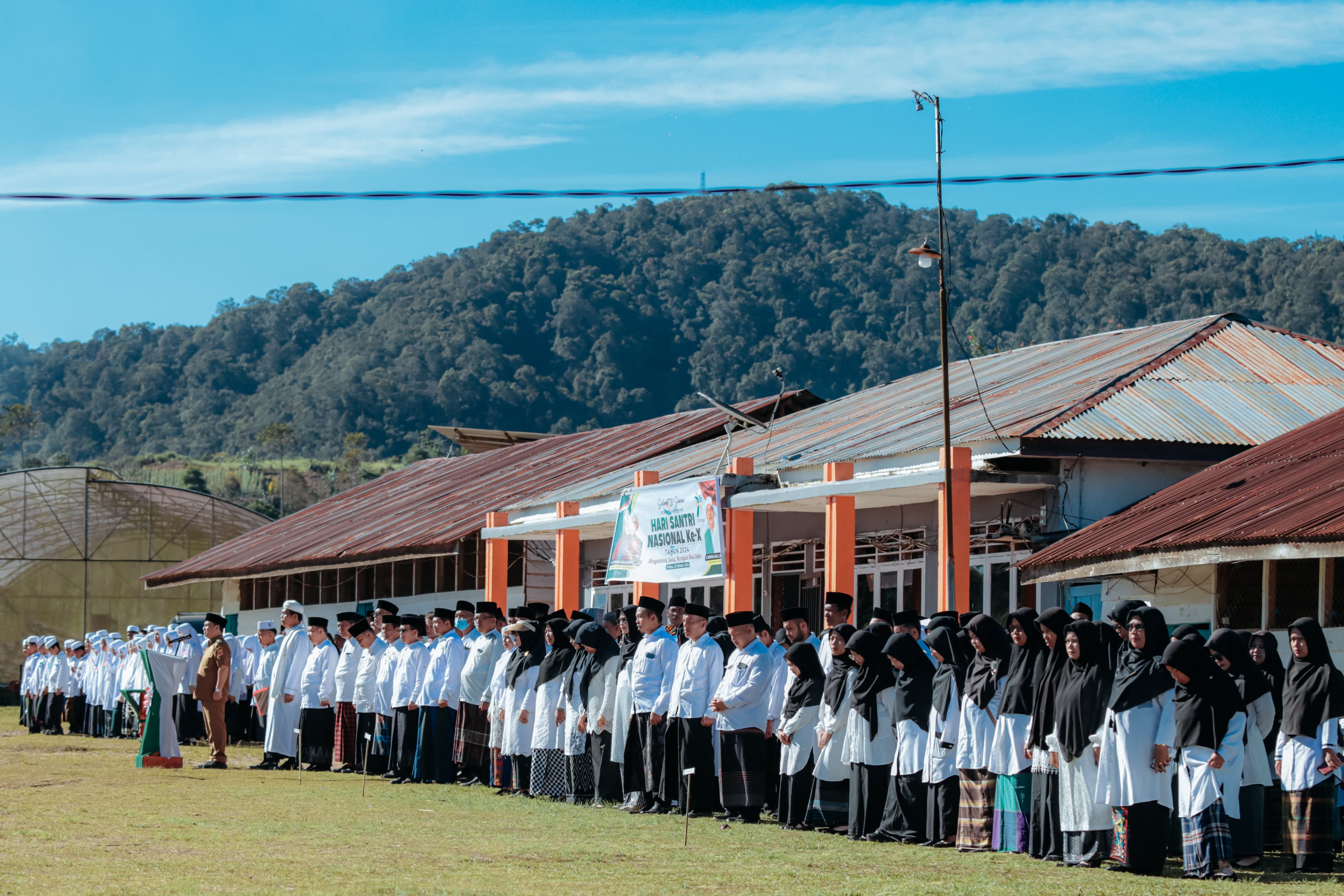 DAIRIKAB.go.id - Penjabat (Pj) Bupati Dairi, Surung Charles Lamhot Bantjin bertindak sebagai Inspektur Upacara (Irup) pada peringatan Hari Santri Nasional yang ke-10 Tahun 2024 di lapangan Pesantren Sidiangkat, Selasa (22/10/2024).
