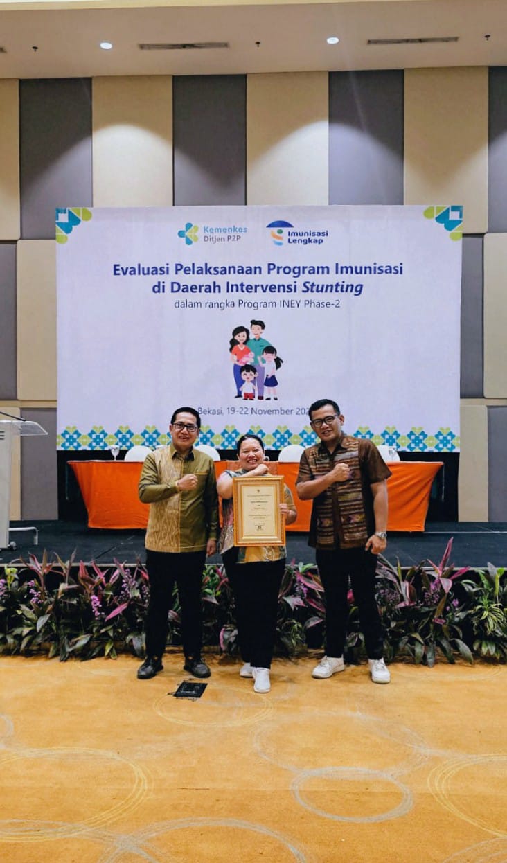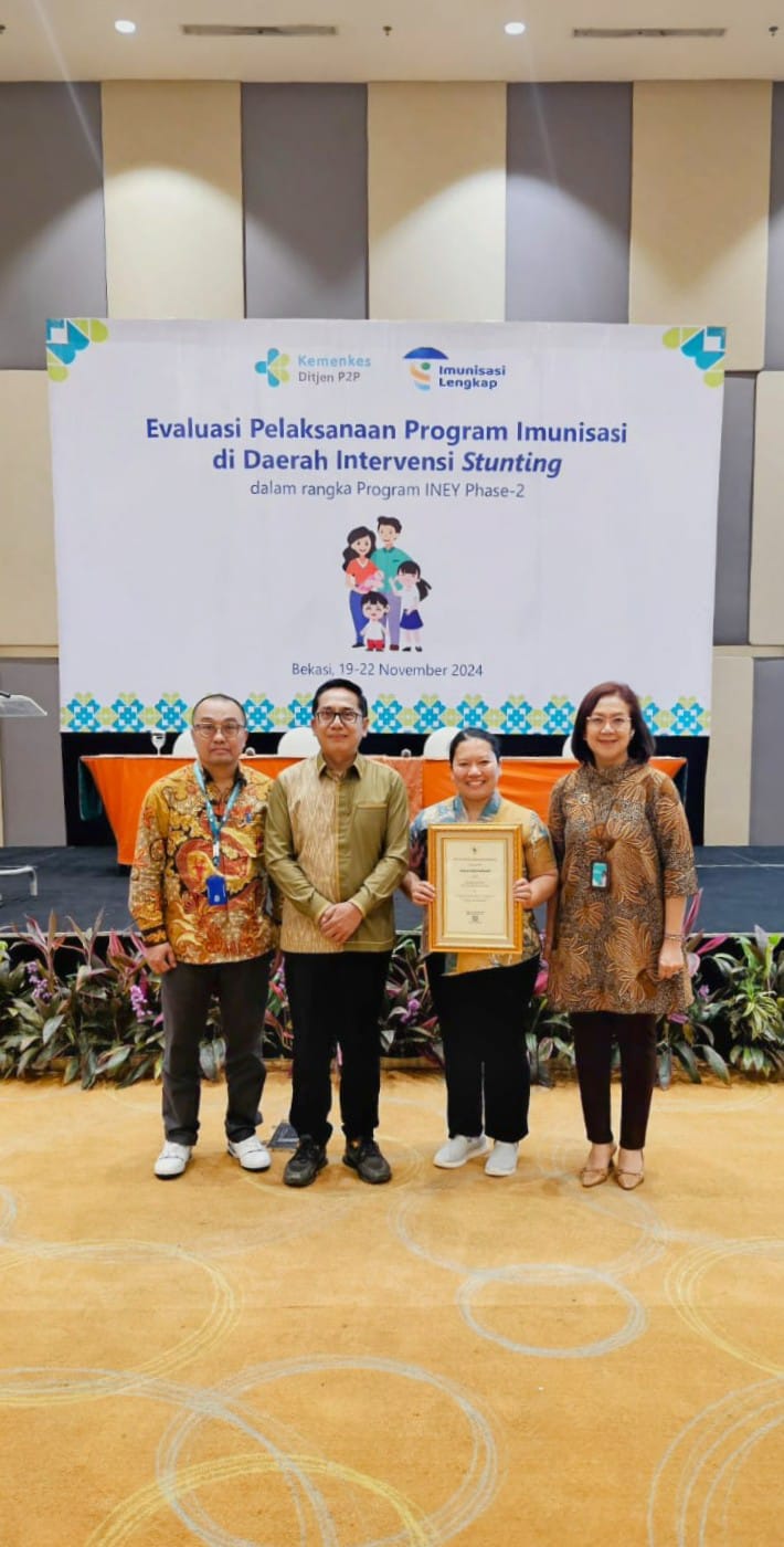 Penghargaan tersebut diterima langsung oleh Kepala Dinas Kesehatan dr. Henry Manik yang diserahkan oleh Direktur Pengelolaan dan Pelayanan Imunisasi Kementerian Kesehatan dr. Prima Yosephine di Harris Hotel and Convention Hall, Bekasi, Selasa (19/11/2024).