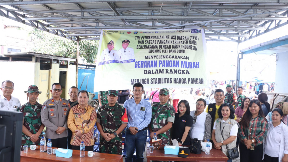 Dalam gerakan pangan murah serentak, Pemkab Dairi yang bekerja sama dengan Bulog Kabanjahe menyalurkan 2400 paket untuk 15 kecamatan. Untuk harga jual, per paket sebesar Rp. 74.000 dengan rincian beras 5 kg dan 1 liter minyak kita. Gerakan pangan murah di ikuti oleh 4.302 kecamatan seluruh Indonesia. Sedangkan untuk beras, terdapat 43.665 ton yang sudah pesan ke Bulog dan menjadi penyaluran tertinggi.(RJT)