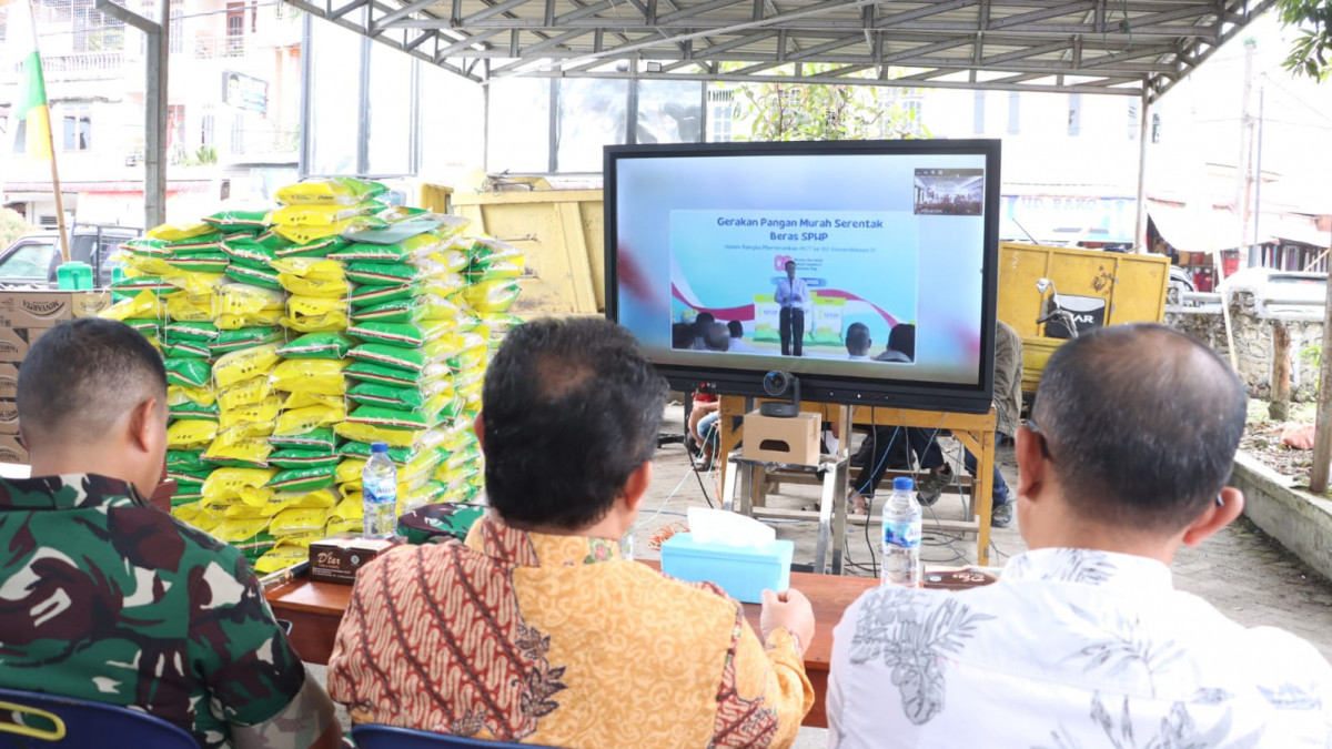 Sidikalang - Dalam rangka menjaga stabilitas harga pangan dan memeriahkan HUT ke-80 RI, Pemkab Dairi ikuti Gerakan Pangan Murah (GPM) Se-Kecamatan seluruh Indonesia pada Sabtu (30/8/2025) dari pusat pasar Sidikalang. Gerakan pangan murah yang merupakan agenda nasional diikuti melalui zoom meeting yang dipusatkan dari kantor Kementrian Pertanian, di ikuti oleh Sekretaris Daerah Surung Charles Bantjin, Dandim 0206 Dairi Letkol Czi Nanang Sujarwanto, Perwakilan Kapolres Dairi, Kepala Bagian Perekonomian Lipinus Sembiring dan Direktur Umum PD. Pasar Sidikalang Lumpin Pangaribuan.