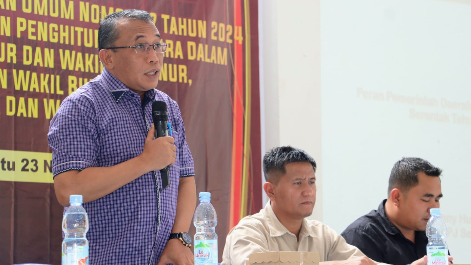 Pj Sekda yang hadir sebagai narasumber menyampaikan potensi kerawanan yang mungkin terjadi sepanjang proses Pilkada 27 November mendatang.