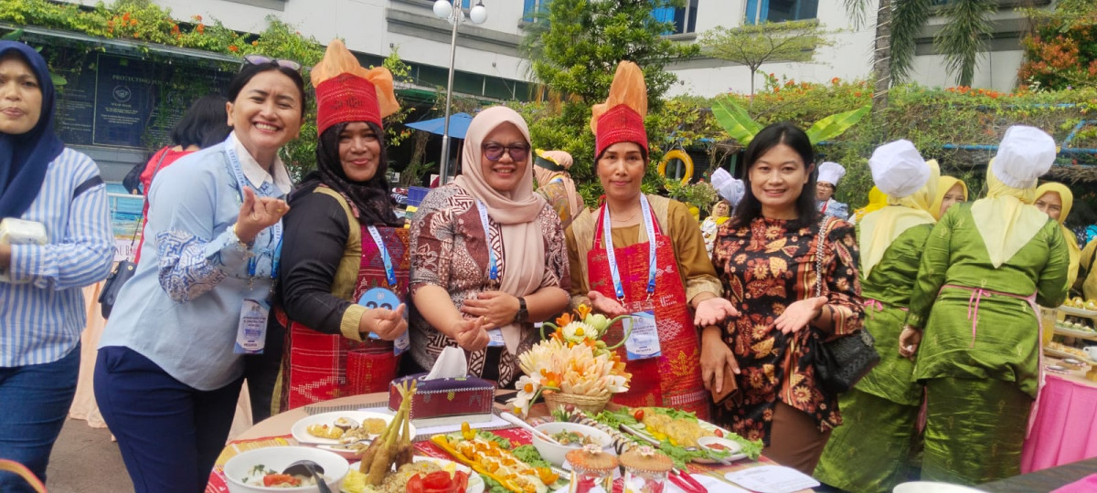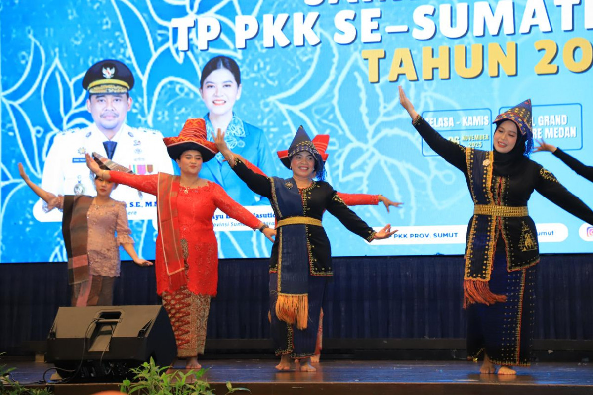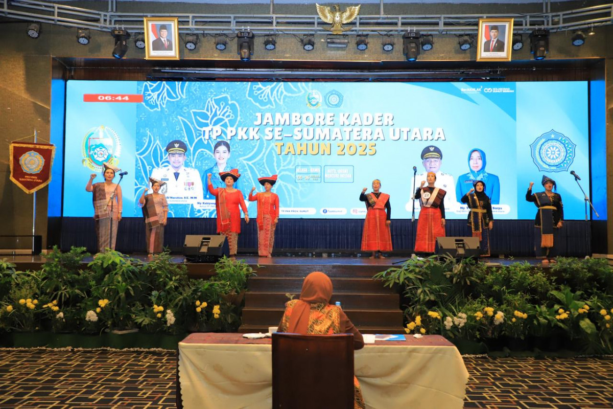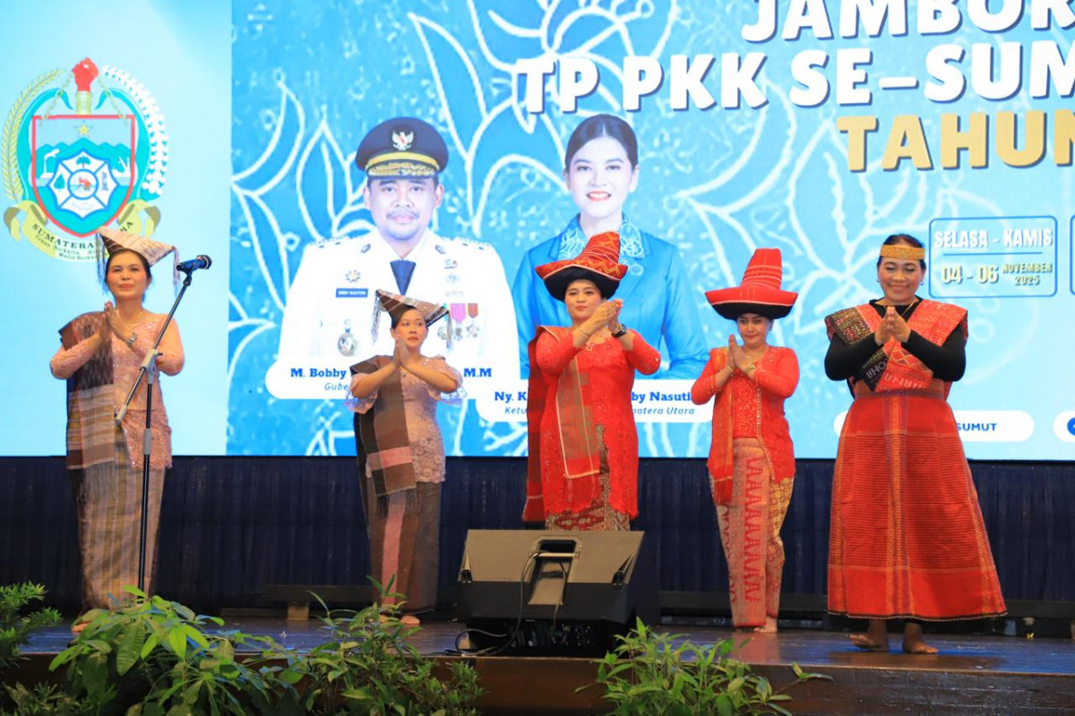 MEDAN - Staff Ahli TP PKK Kabupaten, Ny Sri Dewi Wahyu Sagala bersama sejumlah pengurus PKK Kabupaten Dairi mengikuti Jambore PKK se-Sumatera Utara yang digelar di Hotel Grand Mercure, Medan, Rabu (5/11/2025).