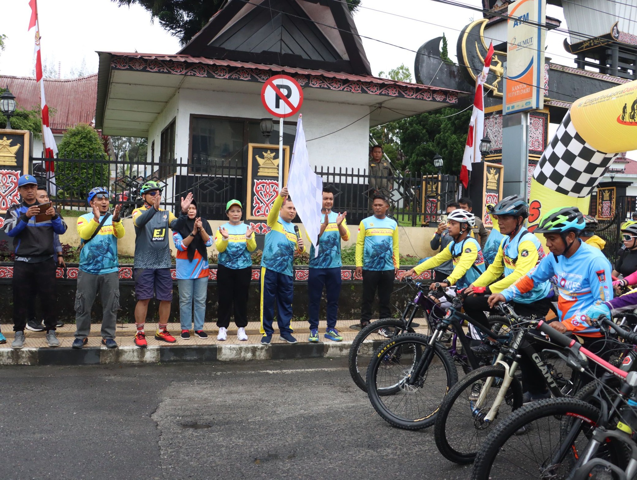 DAIRIKAB.go.id - Pemerintah Kabupaten Dairi melalui Dinas Pariwisata, Budaya, dan Olahrga (Disparbudpora) melaksanakan Jelajah Alam Sidikalang Event Sepeda dengan rute Kantor Bupati Dairi hingga Taman Wisata Iman Sitinjo, Minggu (6/10/202).