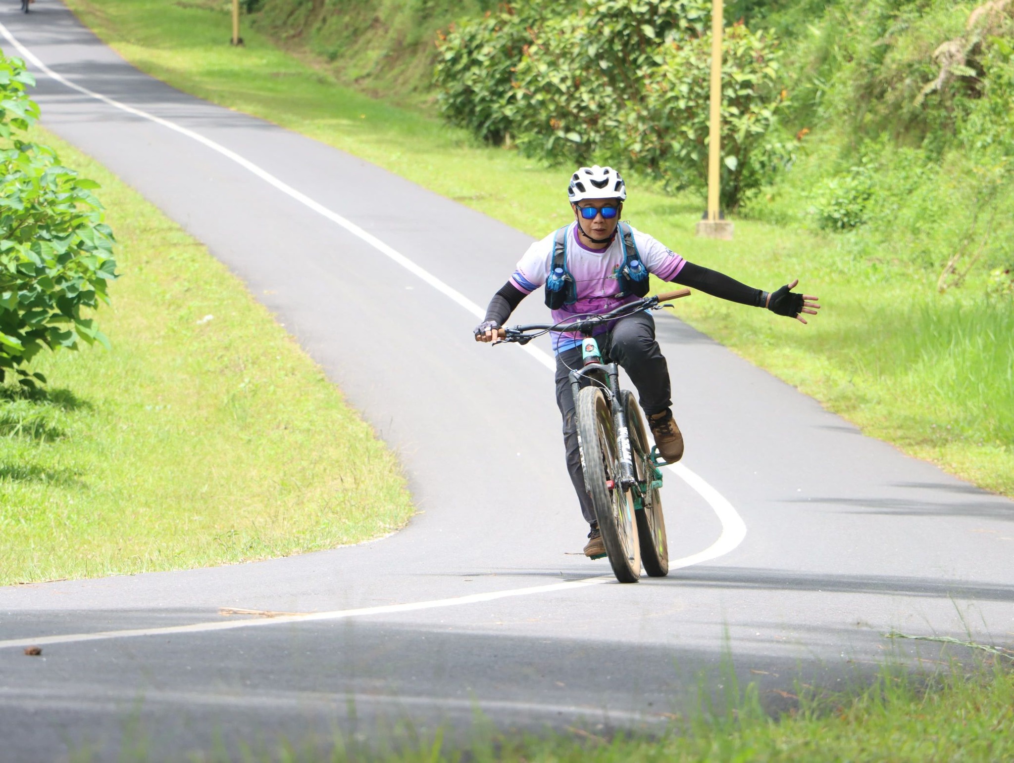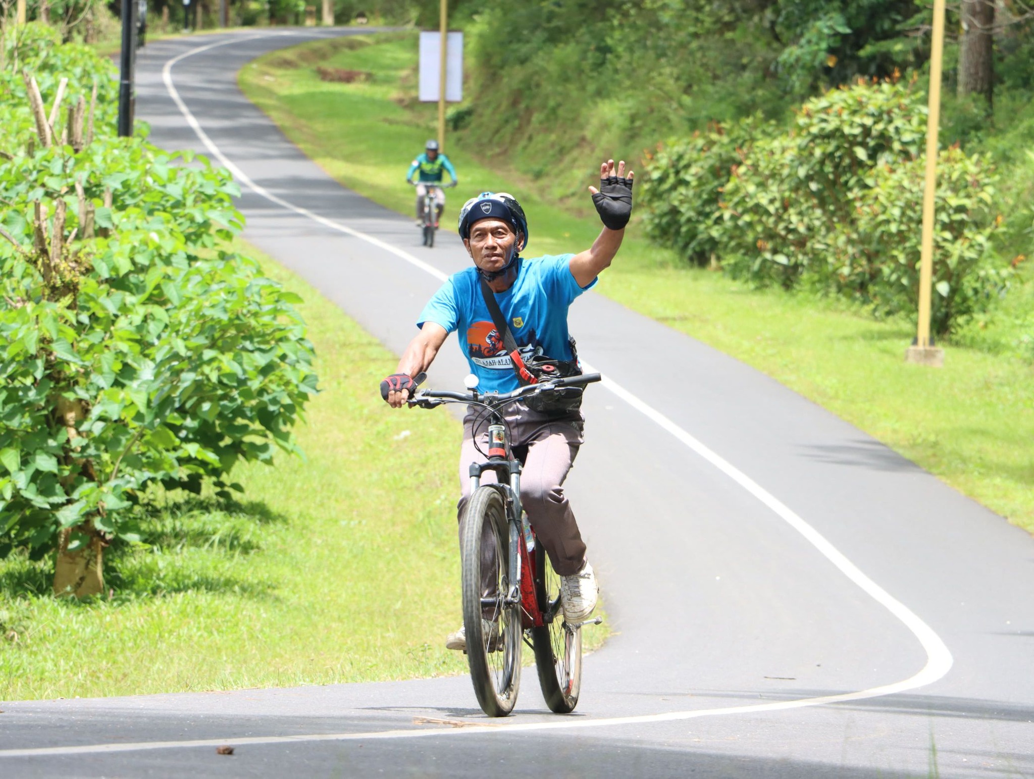 “Track yang kita lalui lumayan bagus karena kita disuguhkan pemandangan perkampungan yang terdapat banyak perkebunan. Ada kebun kopinya, semoga tahun depan ada kebun durian yang sudah matang juga,” ucapnya sambil bergurau.
