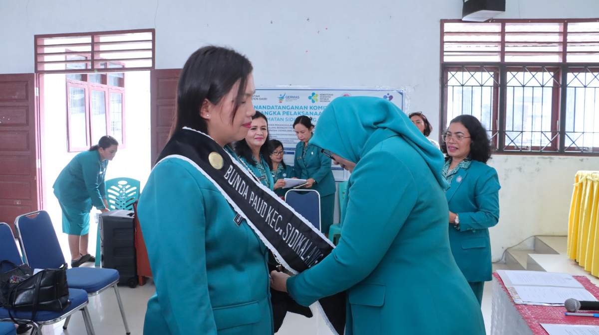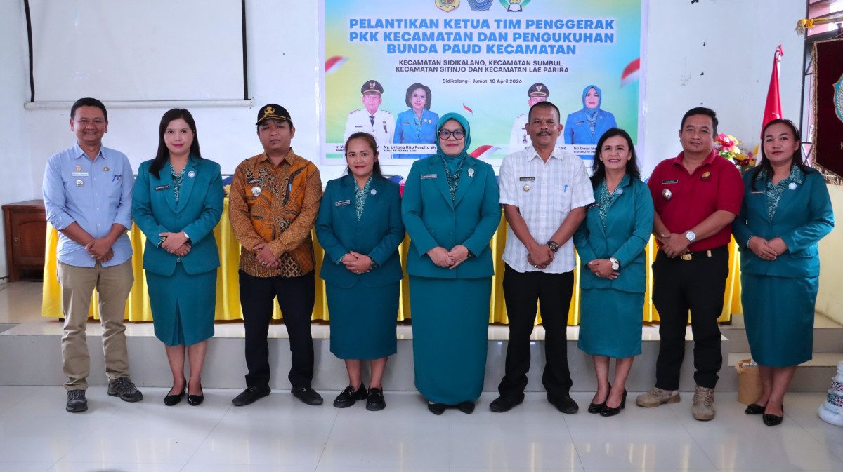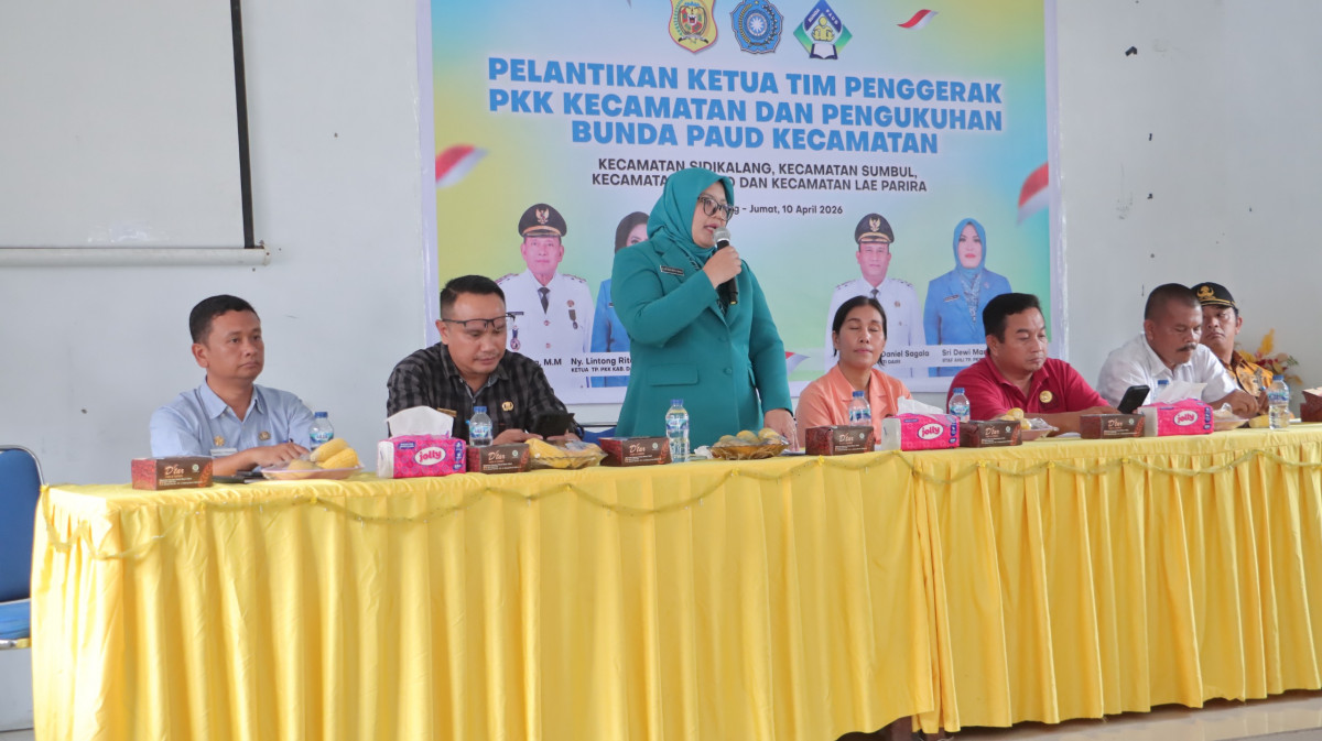 Ketua Tim Penggerak (TP) PKK Dairi Rita Puspita Vickner Sinaga yang diwakili oleh Staf Ahli Tim Penggerak (TP) PKK Dairi Sri Dewi Manik, melantik Ketua TP PKK l Kecamatan dan mengukuhkan Bunda Paud 4 Kecamatan, yakni Kecamatan Sidikalang, Sumbul, Sitinjo dan Lae Parira, pada Jumat (10/4/2026) di aula kantor Kecamatan Sidikalang.