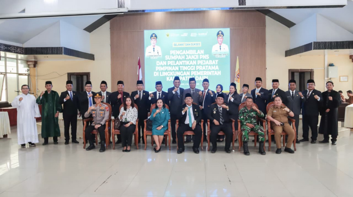 Dairi - Bupati Dairi Vickner Sinaga melantik 16 Pejabat Pimpinan Tinggi Pratama (PPTP) serta mengambil sumpah janji 10 PNS di lingkungan Pemerintah Kabupaten Dairi pada Selasa (4/11/2025) di Balai Budaya Sidikalang. Kegiatan tersebut turut dihadiri oleh Wakil Bupati Dairi Daniel Wahyu Sagala, Unsur Forkopimda dan Sekretaris Daerah Surung Charles Bantjin.