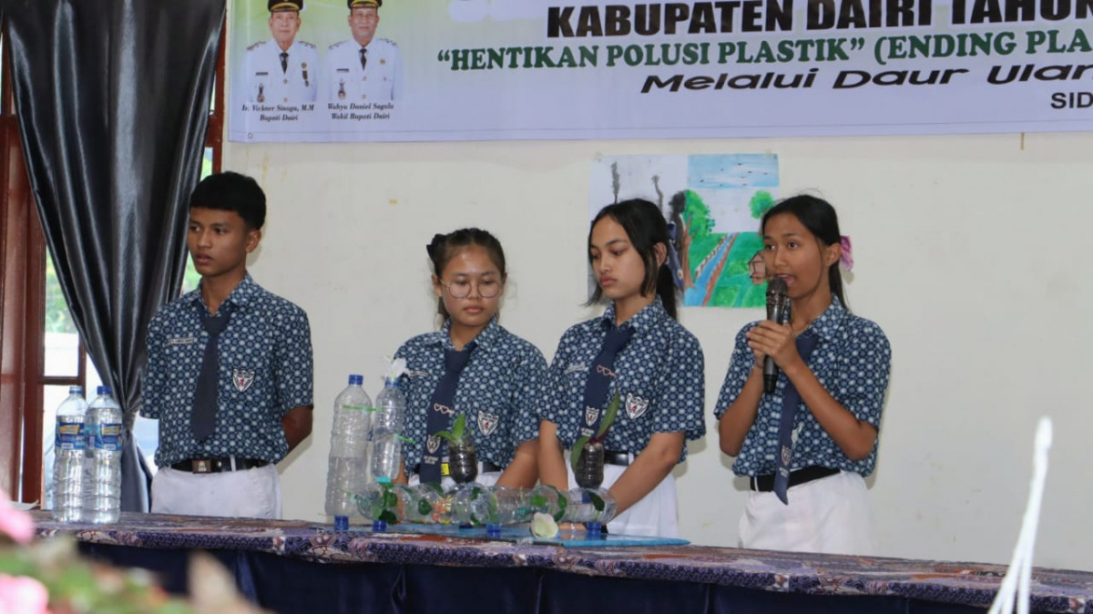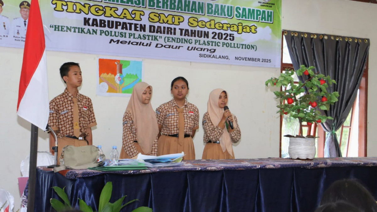 DAIRI - SMP Negeri 1 Berampu merebut juara I kategori lomba melukis dan daur ulang sampah pada lomba kreasi bahan baku sampah tingkat SMP sederajat Se-Dairi yang digelar oleh Dinas Lingkungan Hidup, Kamis (6/11/2025) di Hotel Beristera Sitinjo.