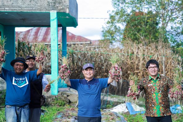 DAIRIKAB.go.id - Teddy Tobing, seorang warga Dairi, berhasil memanfaatkan pekarangan rumahnya dengan menanam komoditi bawang merah 'bawang batu ijo varietas ungu' dan mendapat respons positif dari Penjabat (Pj) Bupati Dairi Surung Charles Lamhot Bantjin.