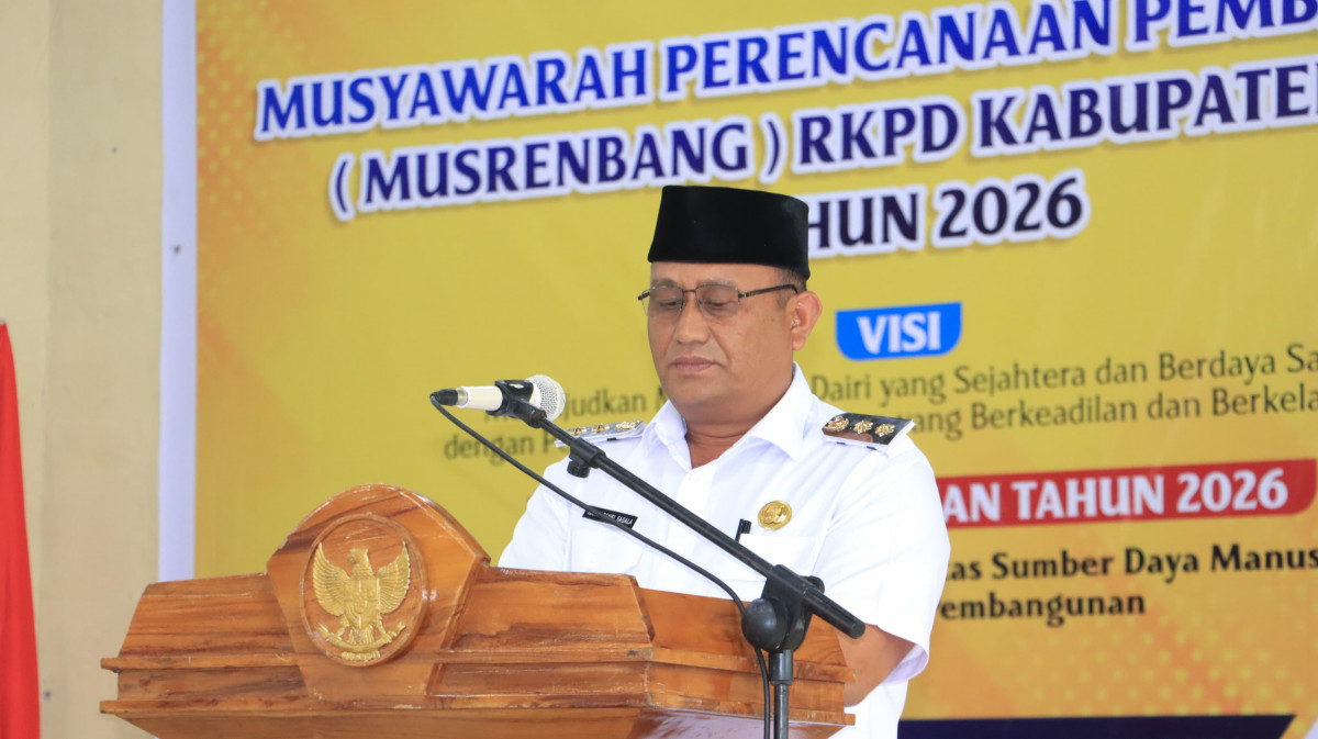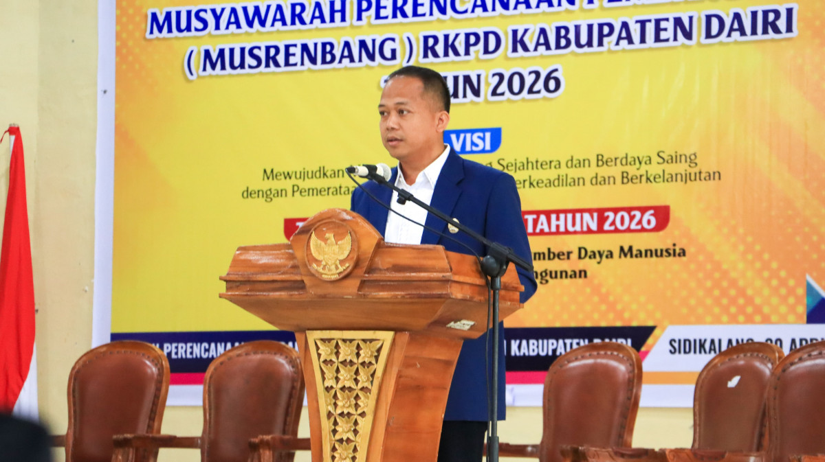 DAIRIKAB.go.id – Waki Bupati Dairi Wahyu Daniel Sagala membuka Musrenbang Rencana Kerja Pembangunan Daerah (RKPD) Kabupaten Dairi Tahun 2026, Rabu 29 April 2025 di Balai Budaya Sidikalang.