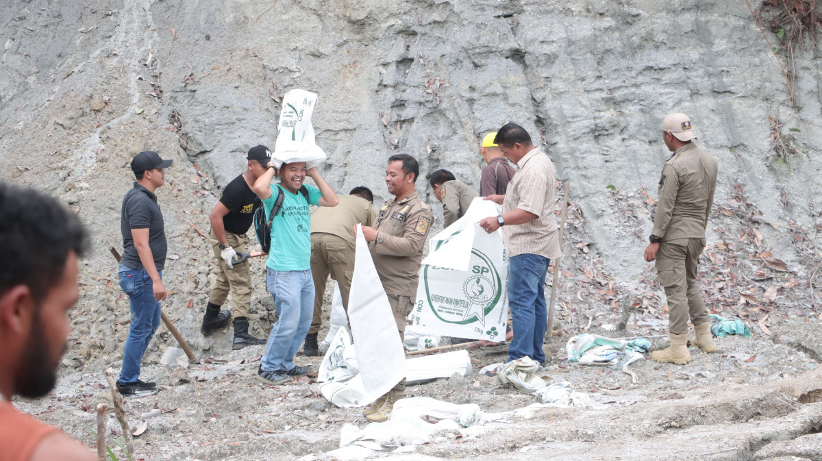 Dalam peninjauannya, Bupati Dairi menginstruksikan tim yang hadir untuk melakukan gotong royong pengisian tanah atau pasir ke dalam goni yang nantinya akan digunakan sebagai dinding penahan longsor. "Sambil menunggu tim BPBD turun hari Senin, mari kita mengisi pasir ke dalam goni, nantinya akan bermanfaat digunakan sebagai dinding penahan longsor," ujarnya sembari memantau pelaksanaan gotong royong.(RT)