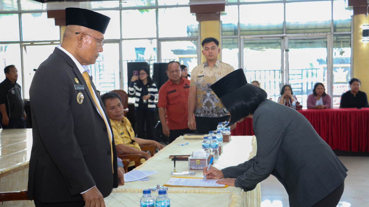 DAIRI - Bupati Dairi, Vickner Sinaga melantik dan mengambil sumpah janji jabatan 8 orang pejabat fungsional di Lingkungan Pemerintah Kabupaten (Pemkab) Dairi, Jumat 28 November 2025 di Balai Budaya, Sidikalang.