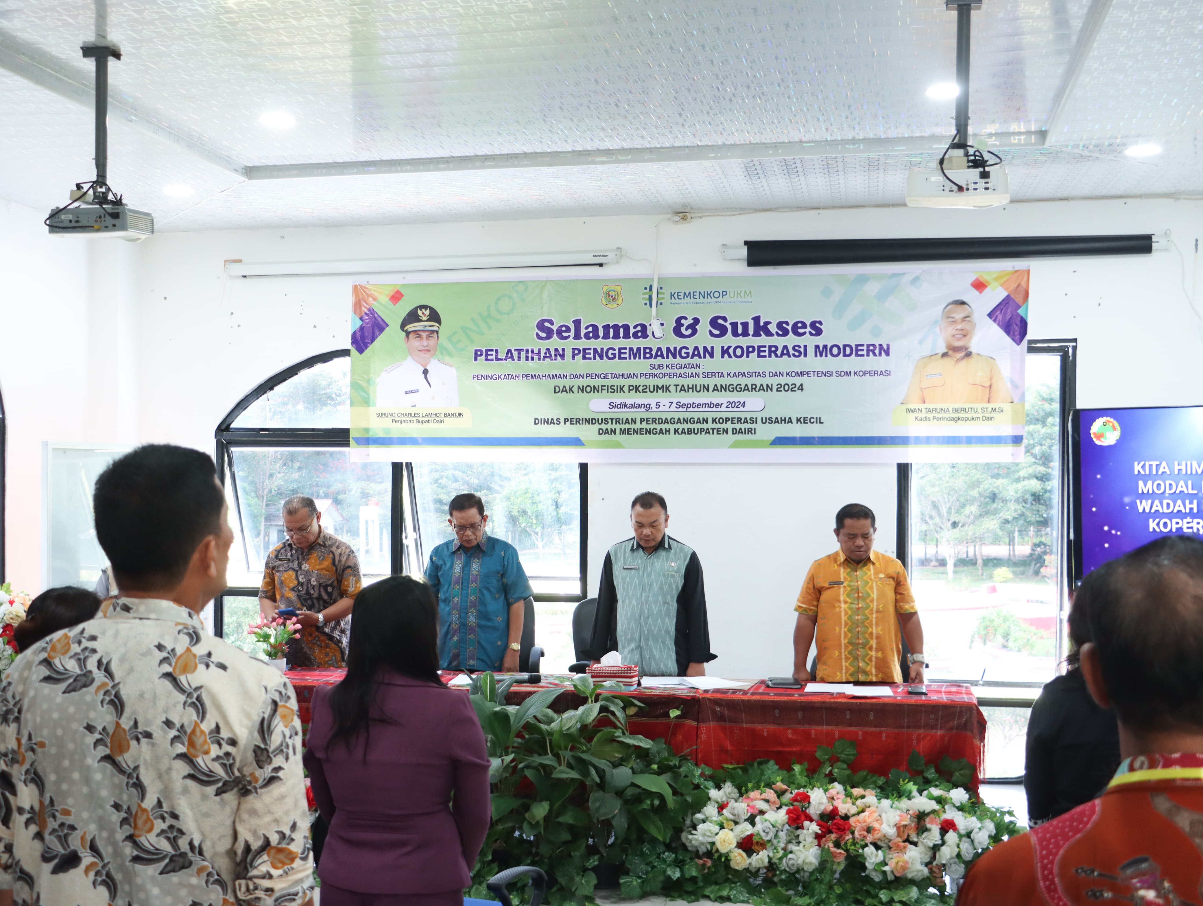 Kadis Perindagkop Dairi, Iwan Taruna Berutu menyampaikan pelatihan pengembangan koperasi modern ini nantinya dapat meningkatkan kemampuan pengurus atau pengelola dalam menyajikan laporan keuangan dengan baik dan benar sehingga RAT dapat dilaksanakan tepat waktu.