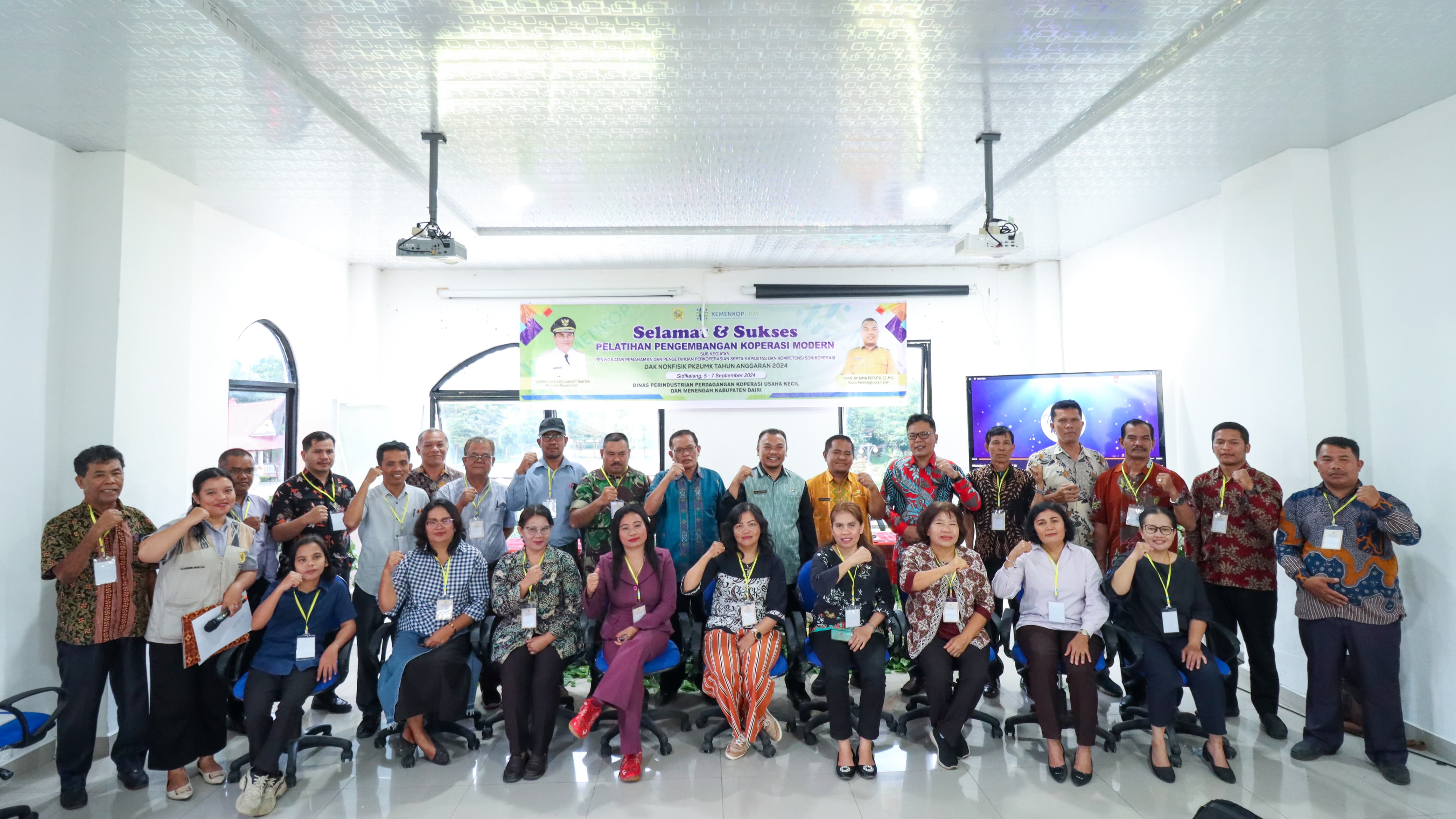 DAIRIKAB.go.id - Untuk meningkatkan SDM pengurus dan pengelola koperasi, khususnya koperasi yang bergerak di sektor riil untuk meningkatkan kemampuan dan ketrampilan pengurus atau pengelola koperasi dalam mengelola koperasi, Dinas Perindustrian Perdagangan Koperasi (Perindagkop) UKM Kabupaten Dairi, gelar pelatihan pengembangan koperasi modern kepada 25 orang pengurus koperasi perwakilan 25 koperasi yang ada di Dairi. Kamis (5/9/2023) di gedung Plut KUMKM Raja Ekuten Asah Ujung Van Keppas.