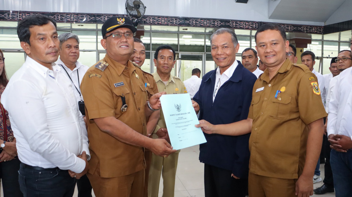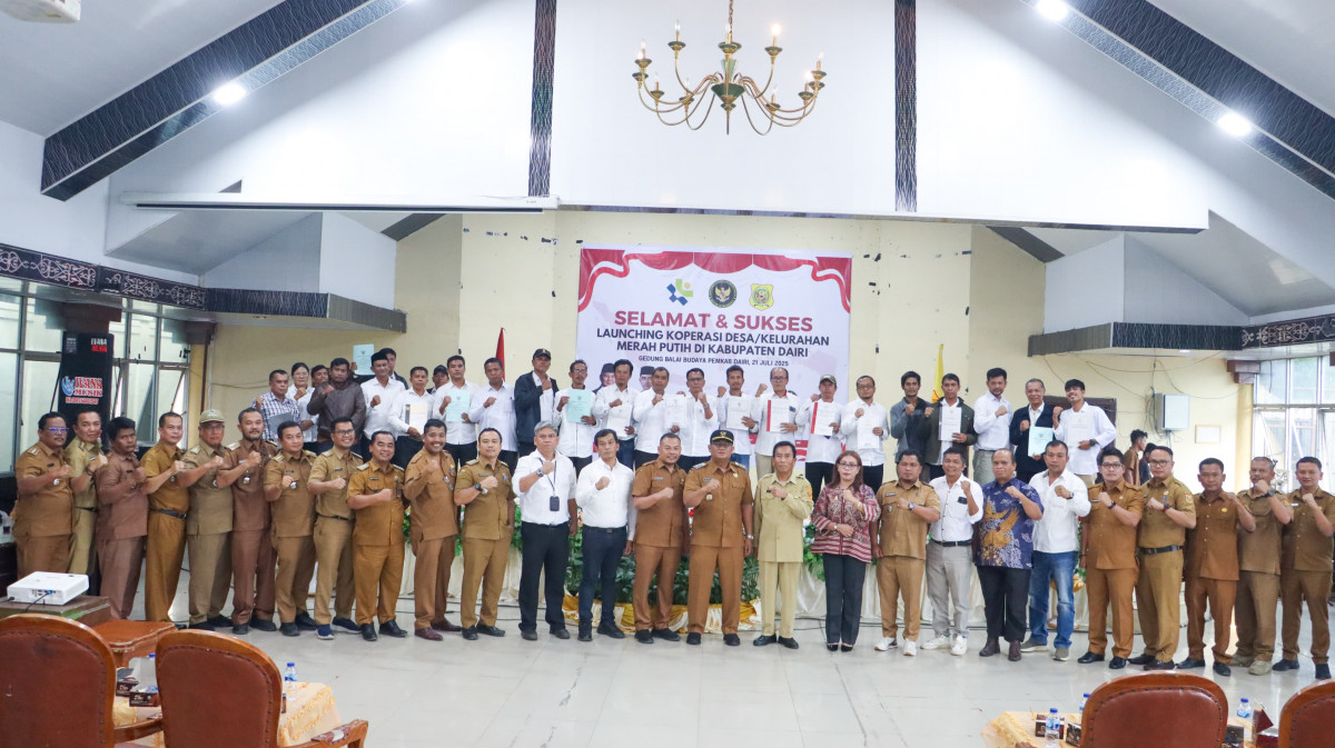 Bupati Dairi, Ir. Vickner Sinaga dan Wakil Bupati Dairi, Wahyu Daniel Sagala, menghadiri acara peluncuran kelembagaan 80.081 koperasi Desa/Kelurahan Merah Putih (KDMP) se-Indonesia melalui daring di Balai Budaya Sidikalang, Senin (21/7/2025).
