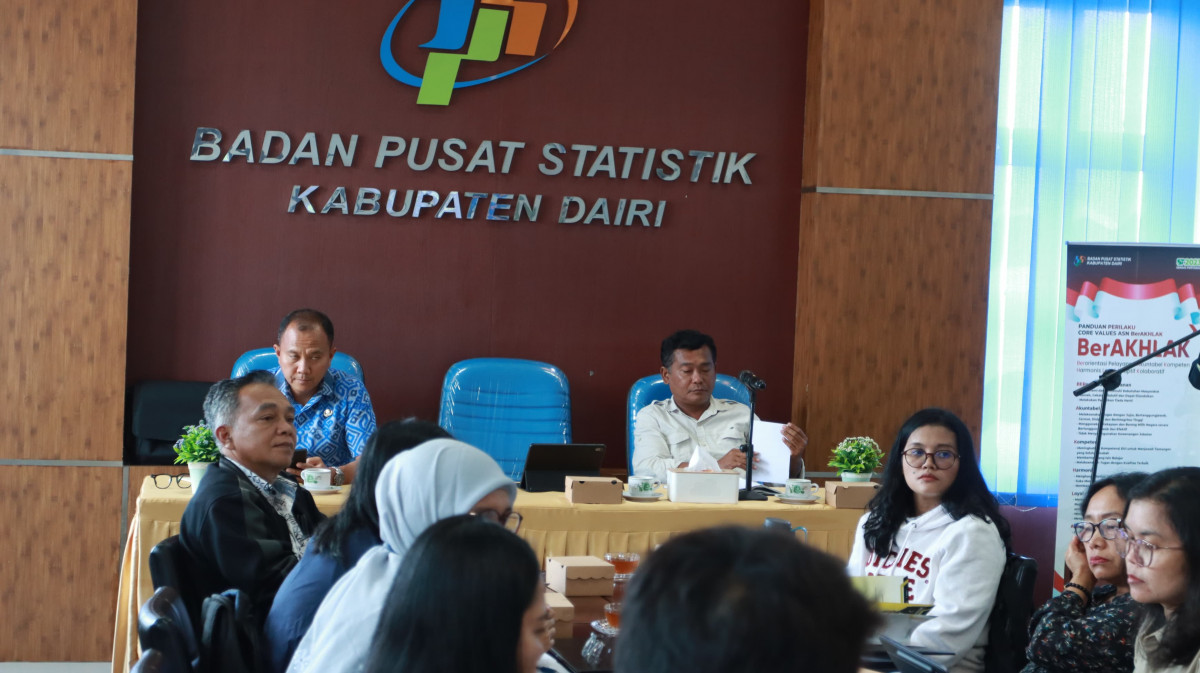 Dairi- Pemerintah Kabupaten Dairi dalam hal ini Dinas Komunikasi dan Informatika menghadiri Pembinaan Statistik Sektoral, Desa Cinta Statistik, Rancangan Portal Satu Data Dairi dan Desa Cantik yang digelar oleh Badan Pusat Statistik (BPS) Kabupaten Dairi, Jumat(16/5/2025), bertempat di Ruang Pertemuan Kantor BPS, Dairi yang dibuka langsung oleh Kepala BPS Dairi, Joel Roy Perangin-angin.