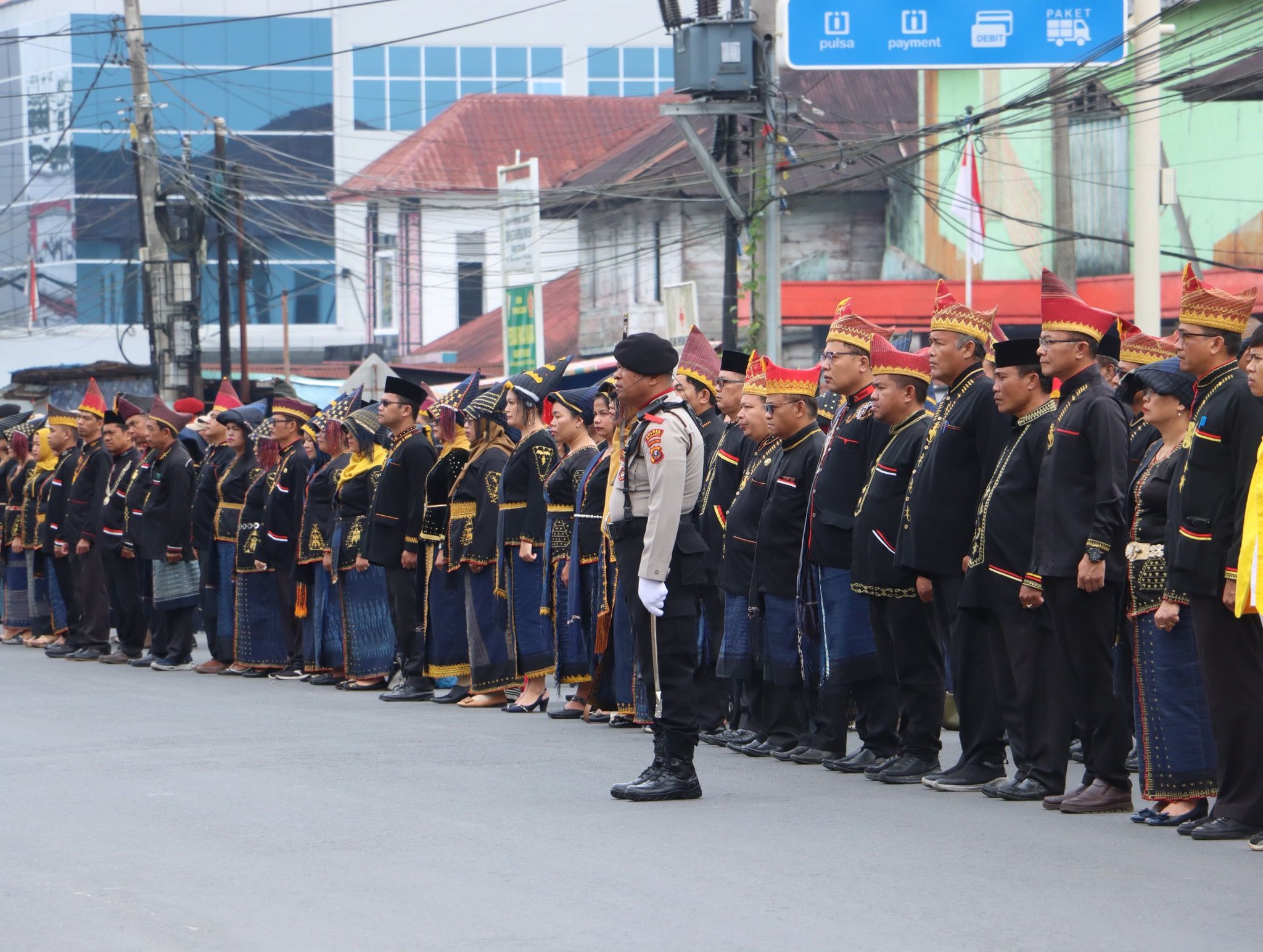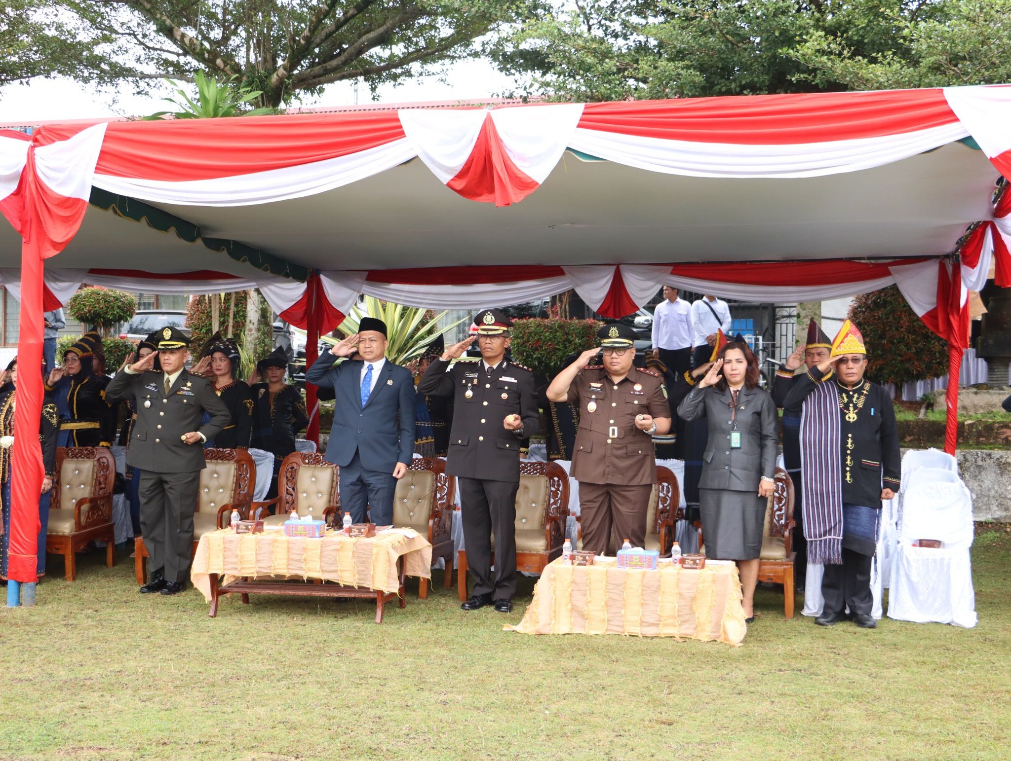 DAIRIKAB.go.id - Penjabat (Pj) Bupati Dairi, Surung Charles Lamhot Bantjin bertindak sebagai Inspektur Upacara (Irup) pada Hari Kesakitan Pancasila di halaman kantor Bupati Dairi, Selasa (1/10/2024).