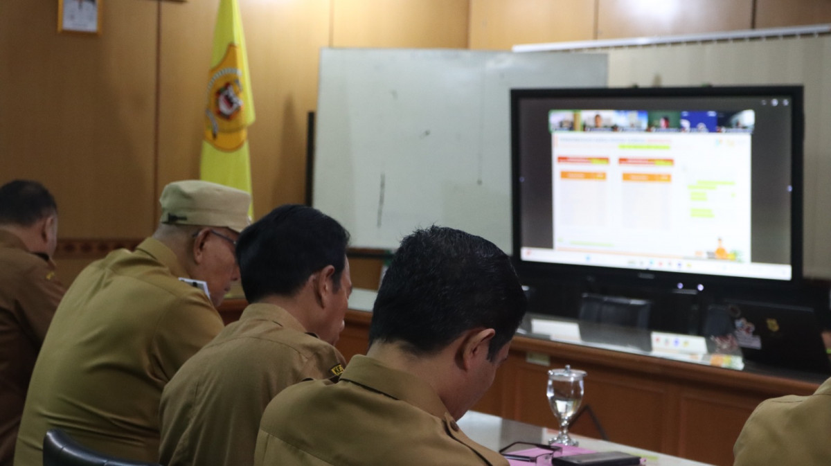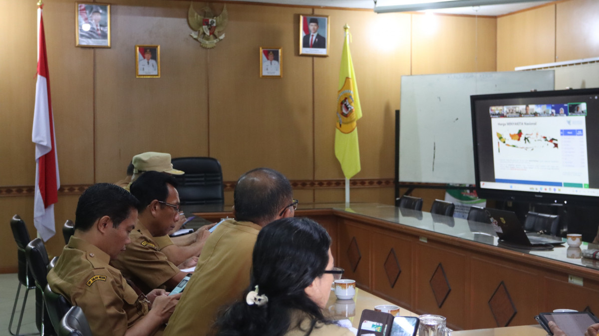 Bupati Dairi, Vickner Sinaga, didampingi Asisten Perekonomian, Suasta Ginting, Kadis Perindagkop, Iwan Taruna Berutu, Kepala Bappeda, Romedi Bangun, serta perwakilan OPD lain turut mengikuti rapat tersebut melalui zoom meeting, di ruang rapat bupati.