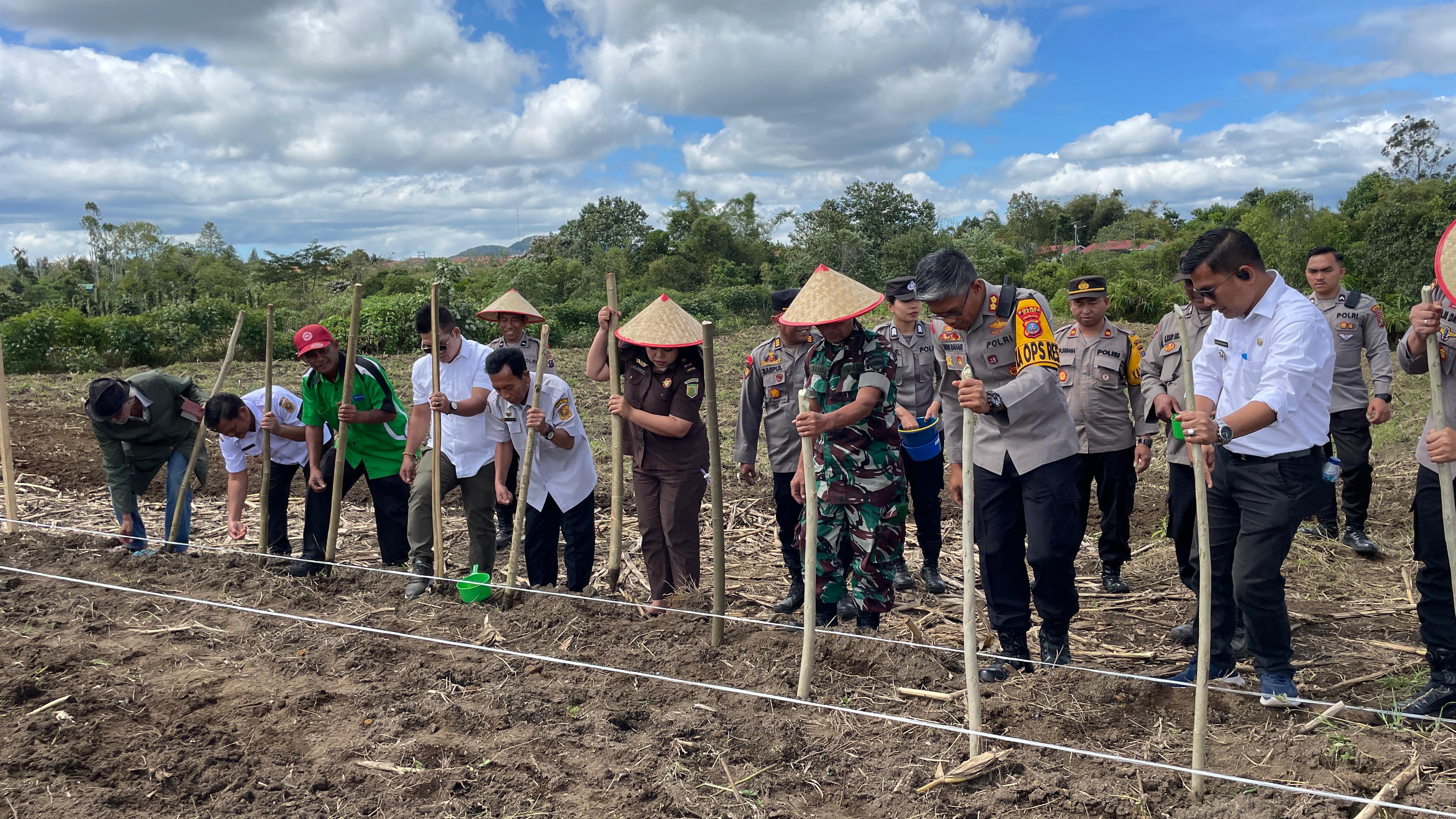 Disela tanam jagung serentak Bersama Kapolres Dairi, AKBP Agus Bahari, Perwakilan Dandim 0206, Lettu inf.J.Maibang, Perwakilan Kajari Dairi, Susi Tinambunan