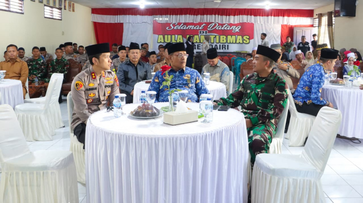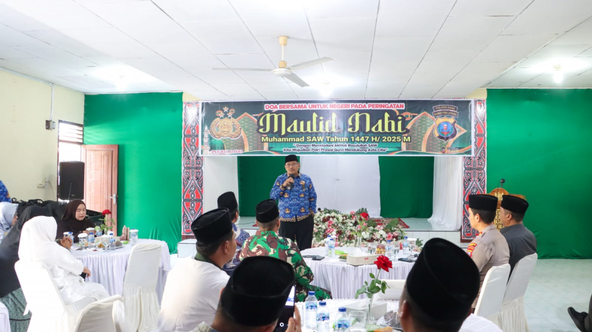 DAIRI - Bupati Dairi, Vickner Sinaga menghadiri doa bersama TNI, Polri, Ulama dan masyarakat dalam rangka memperingati Maulid Nabi Muhammad SAW 1447 H/2025 M yang diselenggarakan oleh Polres Dairi di Aula Kamtibmas Polres Dairi, Rabu (17/9/2025).