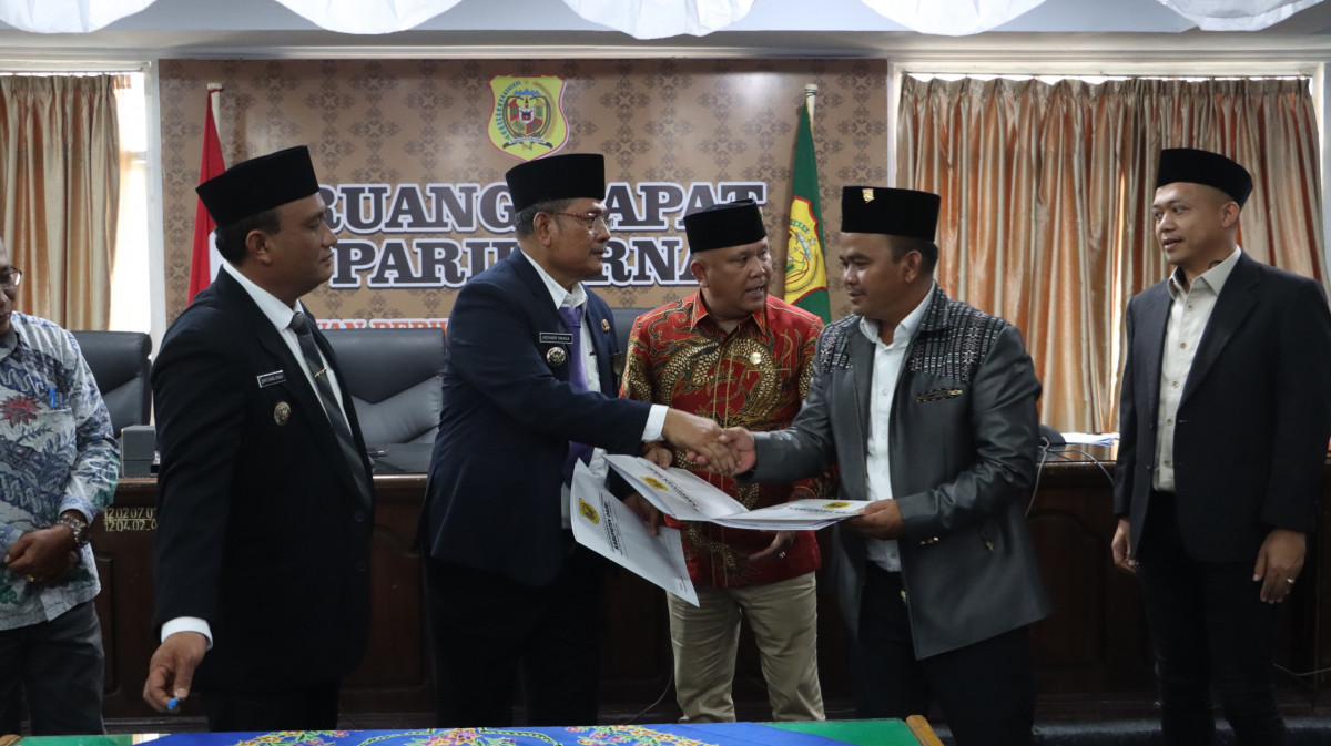 Dairi- Pemerintah Kabupaten (Pemkab) Dairi bersama Dewan Perwakilan Daerah (DPRD) Dairi melakukan Penandatanganan Nota Kesepakatan tentang Perubahan Kebijakan Umum Anggaran (KUA) dan Perubahan Prioritas Plafon Anggaran Sementara (PPAS) APBD Tahun Anggaran 2025 dalam sidang paripurna DPRD, Kamis (25/9/2025).