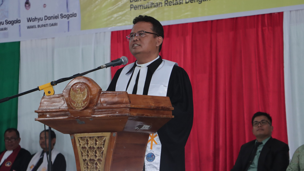 Yang menjadi Pengkhotbah adalah Sekjen GKPI Pdt. Parsaoran Sinaga, dimana dalam khotbahnya ia sampaikan bahwa paskah yang kita rayakan saat ini adalah tentang kepedulian. Kristus yang bangkit memperlihatkan bahwa dia adalah Tuhan yang hidup dan kuasa. "Yang hendak kita renungkan bukan kebangkitan tubuh kita yang fana ini, tapi kebangkitan tubuh rohani kita. Kita sedang merenungkan karya Tuhan untuk kehidupan kekal yang disediakan oleh-Nya," ucap Sekjen dalam khotbahnya.