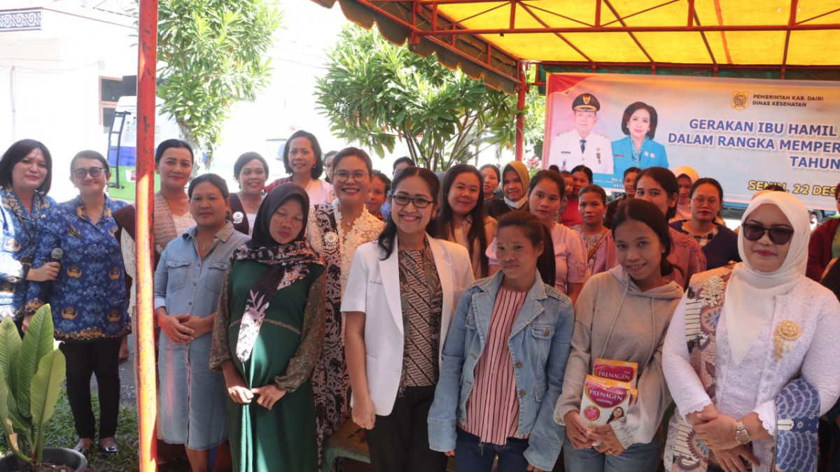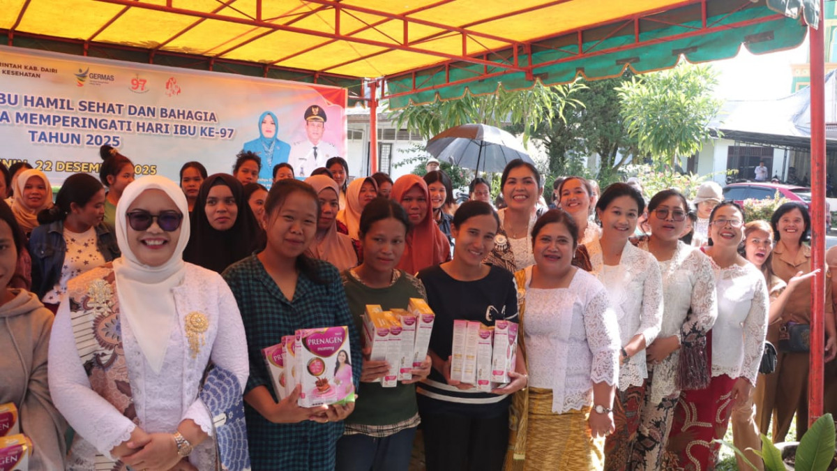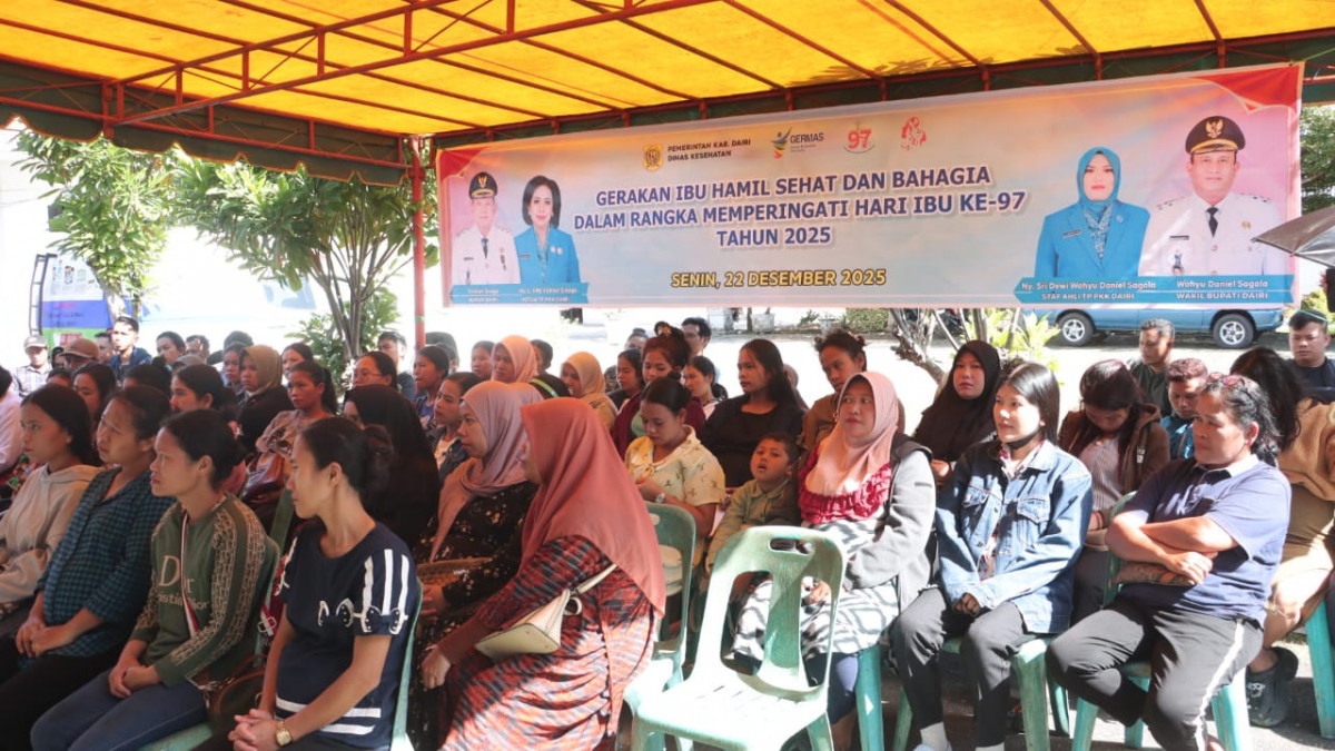 Sidikalang - Dinas Kesehatan Kabupaten Dairi mengadakan kegiatan gerakan ibu hamil sehat dan bahagia dalam rangka peringatan hari ibu ke-97, Senin (22/12/2025) di kantor PKK Dairi. Kegiatan tersebut dihadiri oleh Ketua TP PKK Dairi Rita Puspita Vickner Sinaga yang diwakili oleh Staf Ahli TP PKK Dairi Sri Dewi Wahyu Daniel Sagala, Kepala Bidang Kesehatan Masyarakat Imelda Purba.