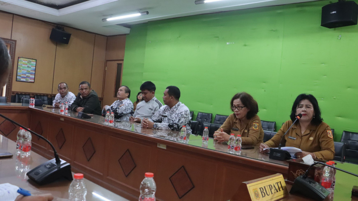 DAIRI - Pertemuan antara Bupati Vickner Sinaga dengan Persatuan Guru Republik Indonesia (PGRI) Cabang Dairi berlangsung hangat dan penuh makna, menandai langkah awal menuju rencana pelaksanaan konferensi luar biasa menjelang berakhirnya masa kepemimpinan pengurus lama yang dipimpin oleh Jolenta Haloho telah berakhir sejak 2024 lalu. Pertemuan yang digelar di ruang rapat Bupati, Selasa (14/4/2026) ini juga dihadiri oleh Asisten Pemerintahan, Agel Siregar, Staf ahli Bupati, Ruspal Simarmata, dan Kadis Pendidikan Jaspin Sihombing serta beberapa pengurus PGRI kabupaten dan kecamatan untuk membahas kepengurusan baru 2025-2030.
