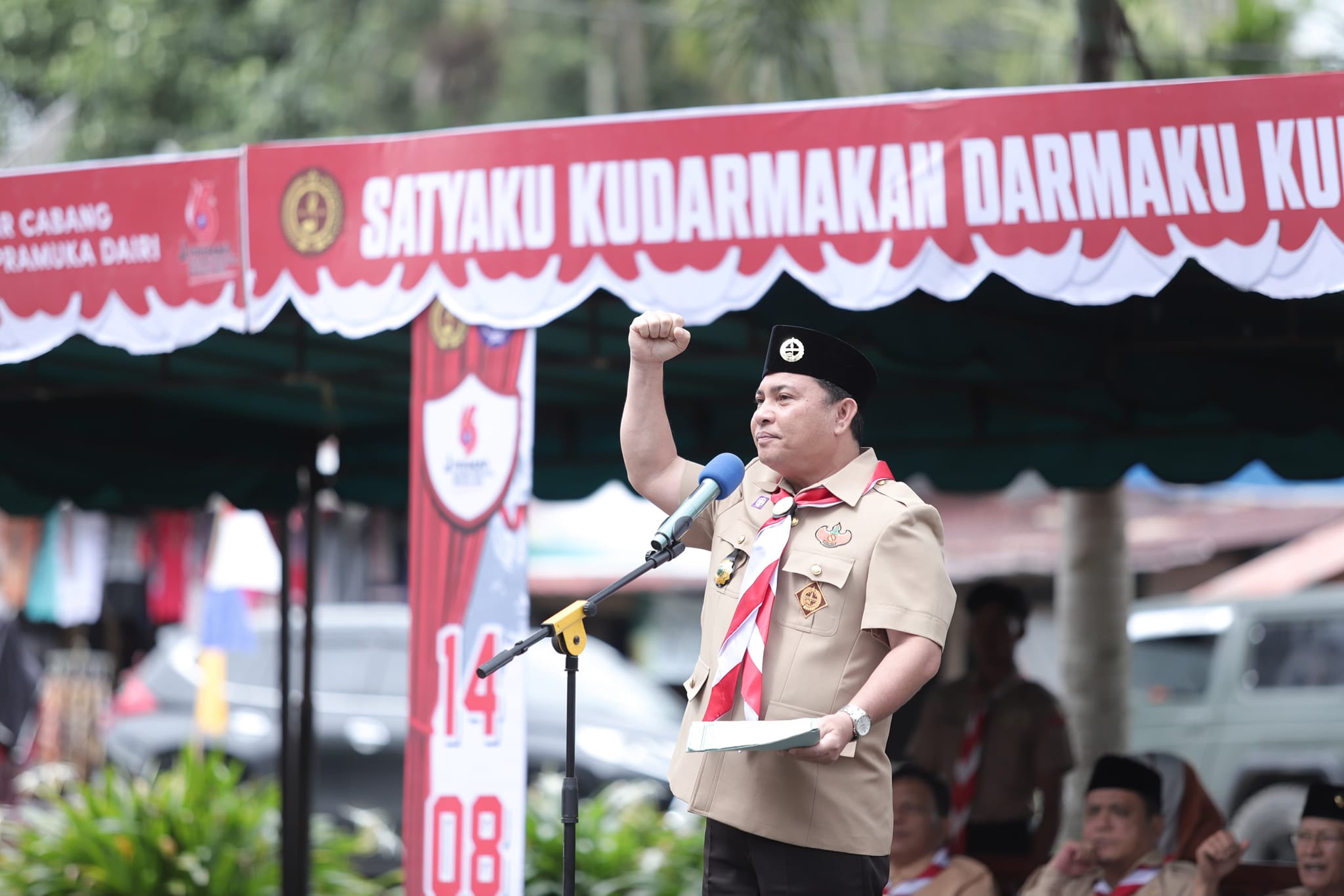 Demikian disampaikan Penjabat (Pj) Bupati Dairi sekaligus Kamabicab Pramuka Dairi, Surung Charles Bantjin saat memimpin apel besar Hari Pramuka ke 63 Kwartir Cabang Pramuka Dairi Tahun 2024 yang dipusatkan di Taman Wisata Iman (TWI) Sitinjo, Sabtu (24/8/2024)