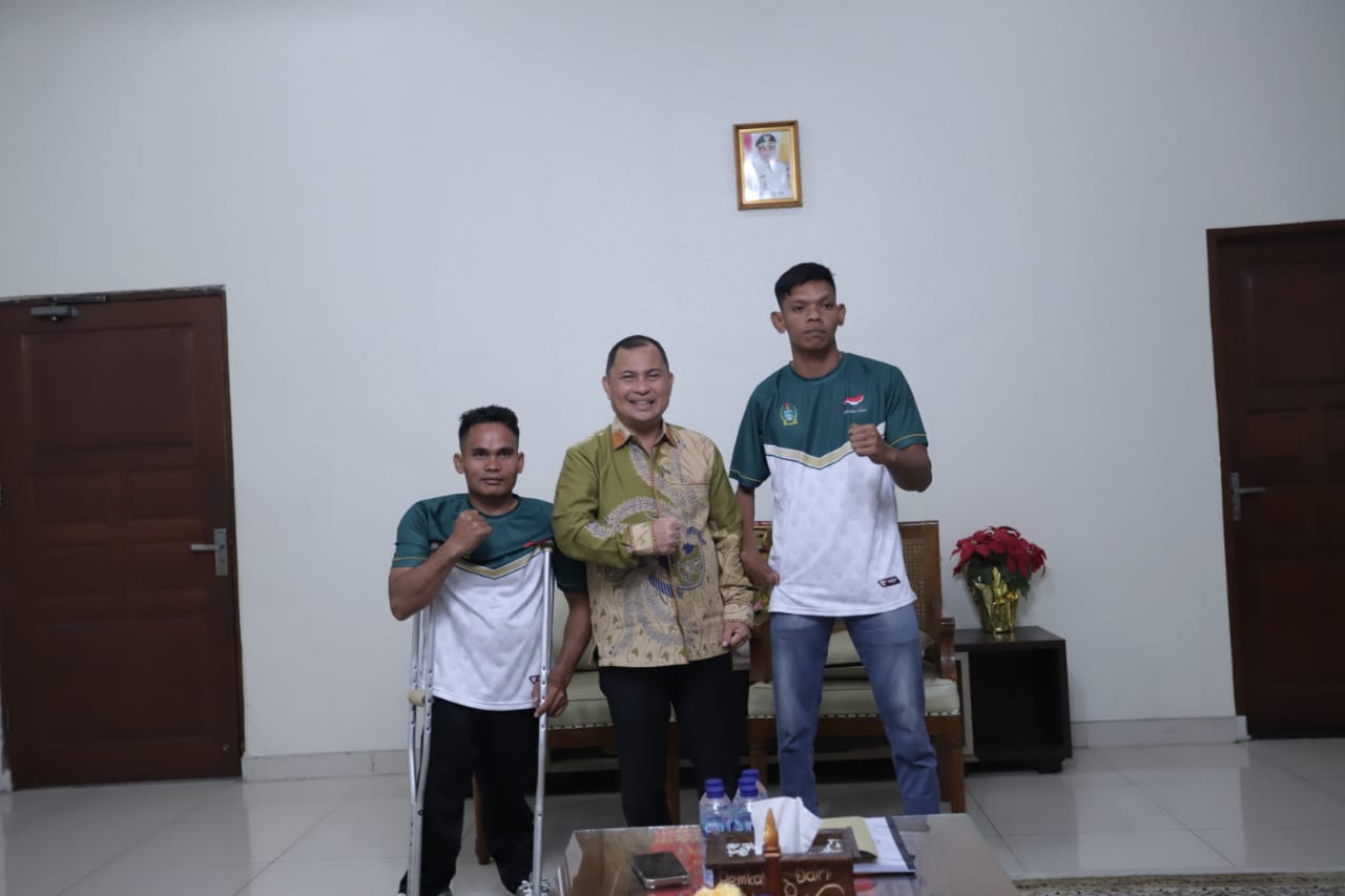 DAIRIKAB.go.id - Penjabat (Pj) Bupati Dairi Surung Charles Bantjin didampingi Kepala Dinas Pariwisata, Kebudayaan dan Olahraga, Rahmat Syah Munthe memberangkatkan 2 atlet asal Kabupaten Dairi untuk mengikuti Pekan Paralimpiade Nasional atau Pekan Paralimpik Indonesia (Peparnas) yang akan berlangsung di Solo Oktober mendatang.