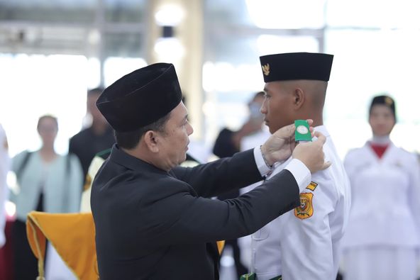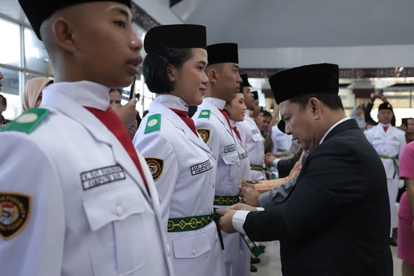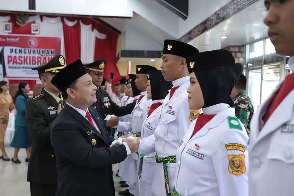 "Adik-adik telah resmi menjadi pasukan Pengibar Bendera Pusaka (Paskibraka) untuk tahun 2024 yang akan menjalankan tugas pada HUT ke-79 RI tanggal 17 Agustus nanti," ucap Pj Bupati Surung Charles Bantjin.