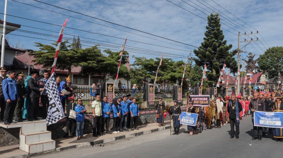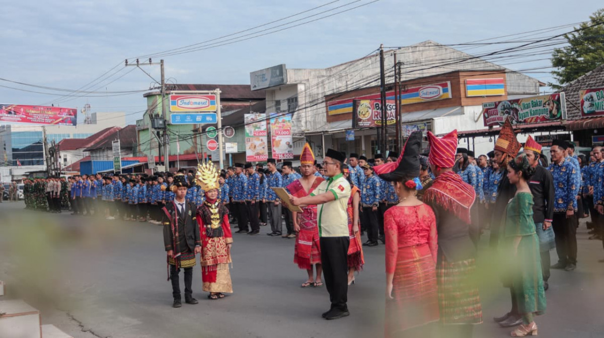 Acara juga dimeriahkan dengan penampilan pawai pakaian adat oleh para pelajar mulai tingkat SD hingga SLTA juga para organisasi kepemudaan lainnya.