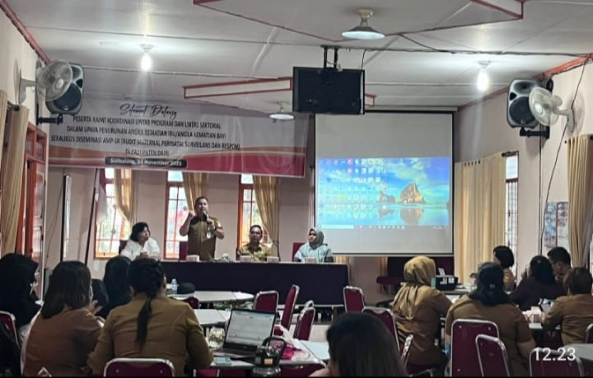 DAIRI - Pemerintah Kabupaten (Pemkab) Dairi melalui Dinas Kesehatan (Dinkes) menggelar rapat koordinasi (rakor) lintas program dalam rangka penurunan Angka Kematian Ibu (AKI), Angka Kematian Bayi (AKB) sekaligus Diseminasi Audit Material Perinatal - Surveilans dan Respon AMP-SR Kabupaten Dairi, Senin (24/11/2025) di Aula Sada Ahmo, Sidikalang.