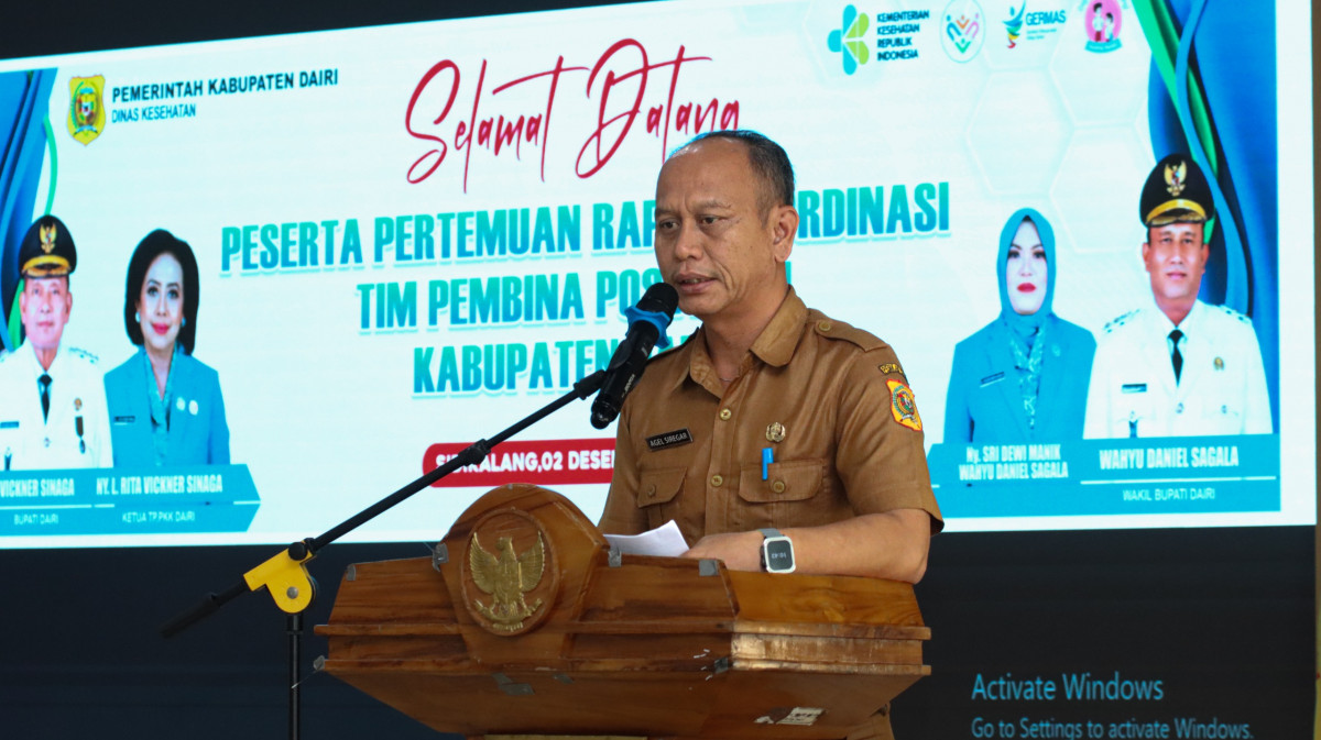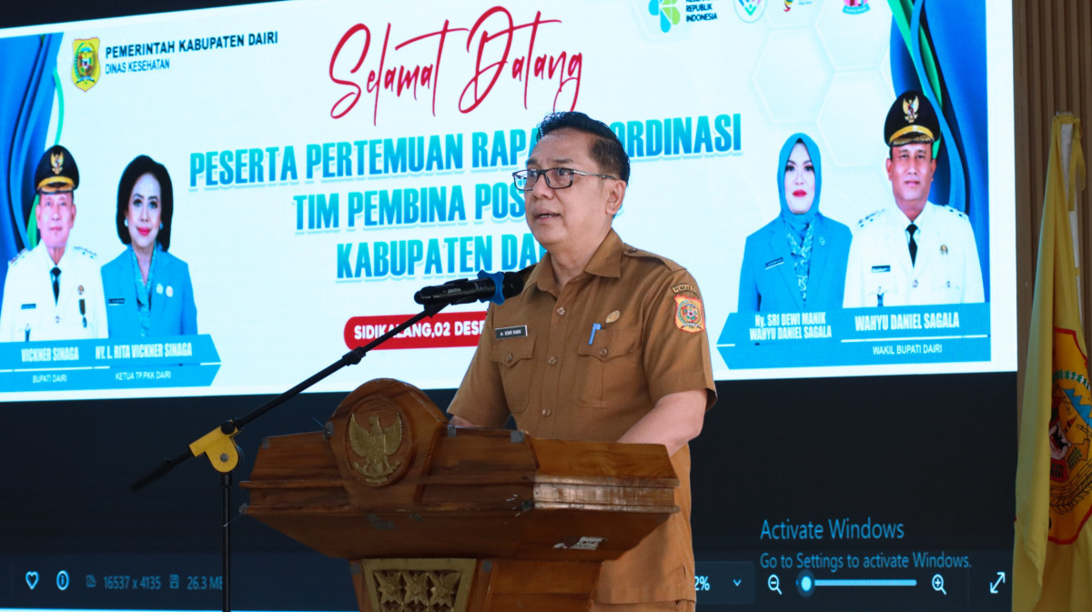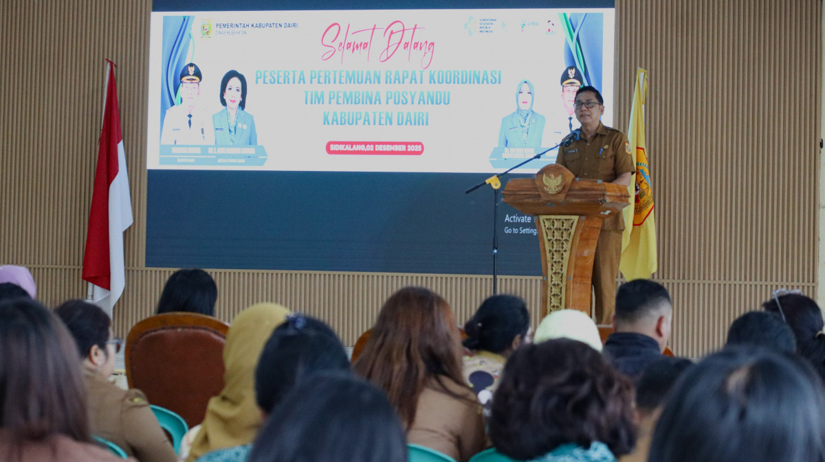Sidikalang - Bupati Dairi Vickner Sinaga yang diwakili oleh Asisten Pemerintahan dan Kesejahteraan Rakyat, Agel Siregar, membuka Rapat Koordinasi (Rakor) Tim Pembina Posyandu pada Selasa (2/12/2025) di Balai Budaya Sidikalang. Turut hadir dalam kegiatan rakor, Wakil Ketua Tim Pembina Posyandu Sri Dewi Wahyu Daniel Sagala, Kepala Dinas Kesehatan Henry Manik.
